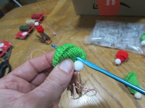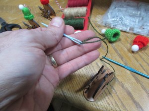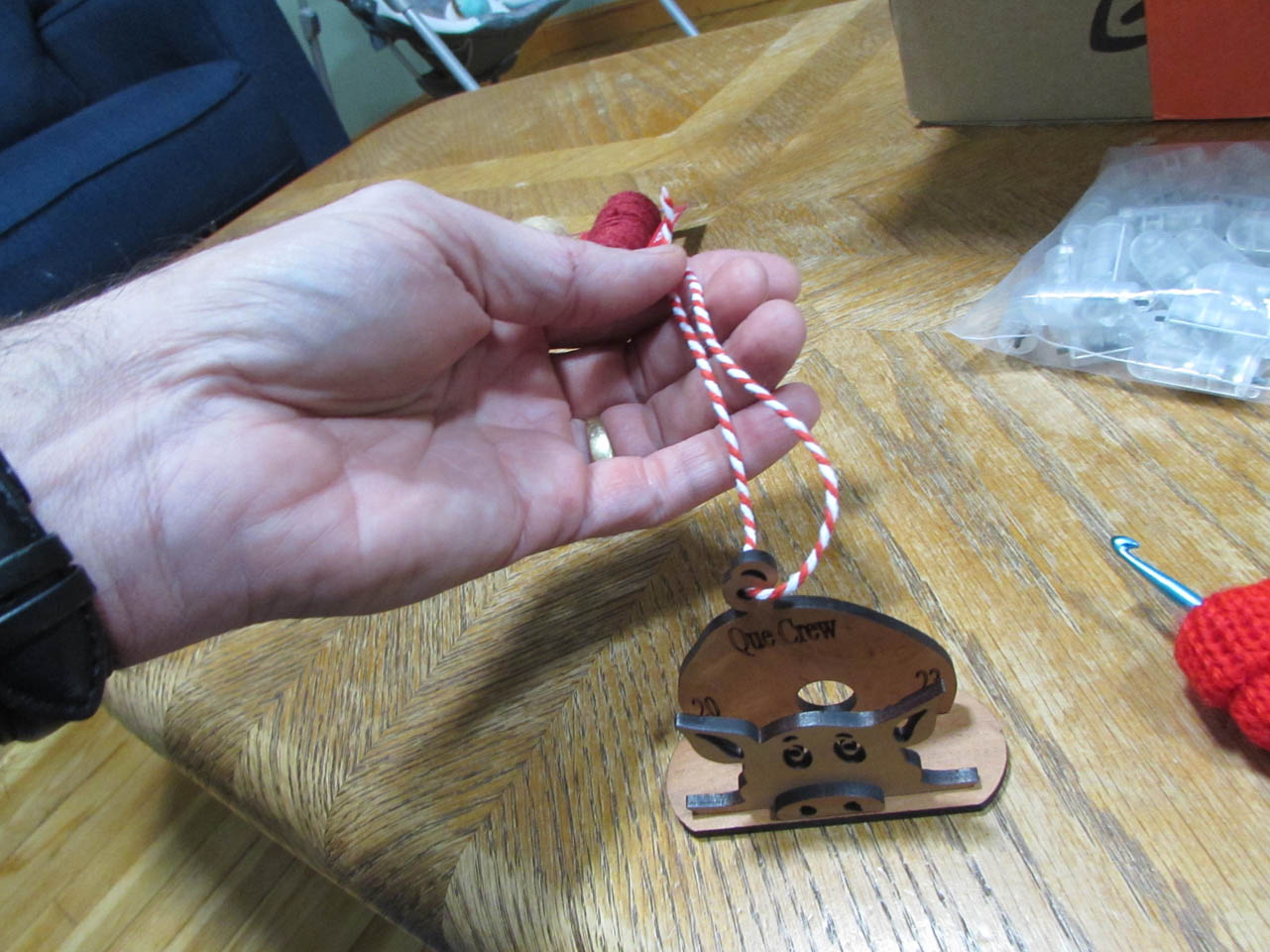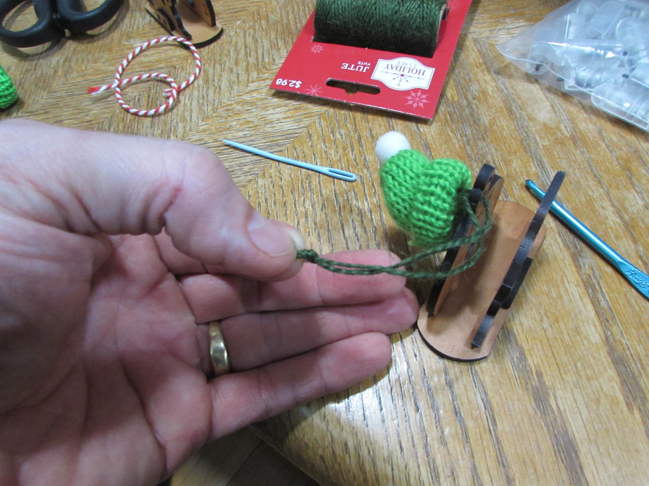 After a few other attempts with the crochet hook, we switched to a large yarn needle.