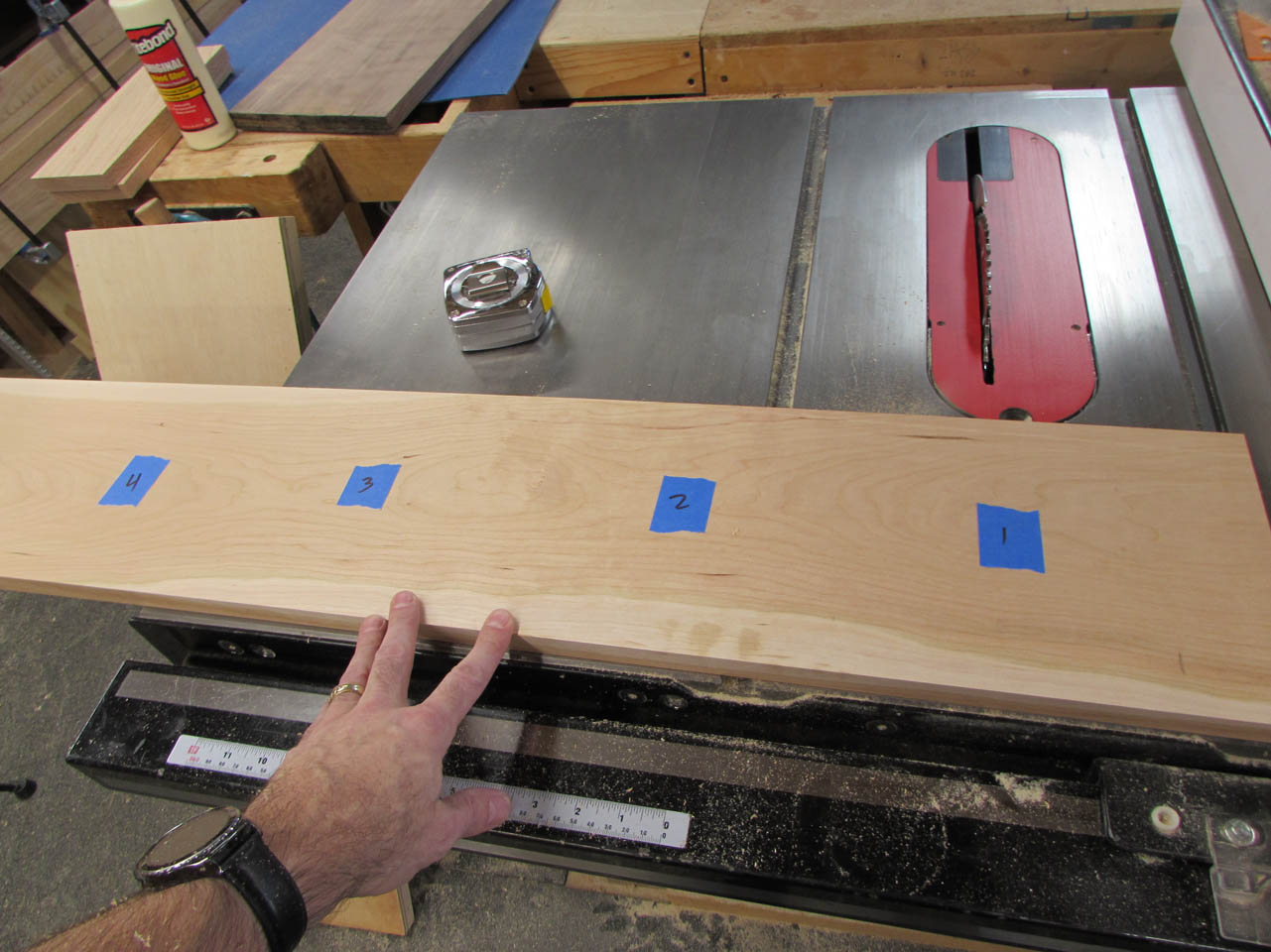 I planed the opposite face and trimmed the final edge on the table saw, leaving the board about 8″ wide.