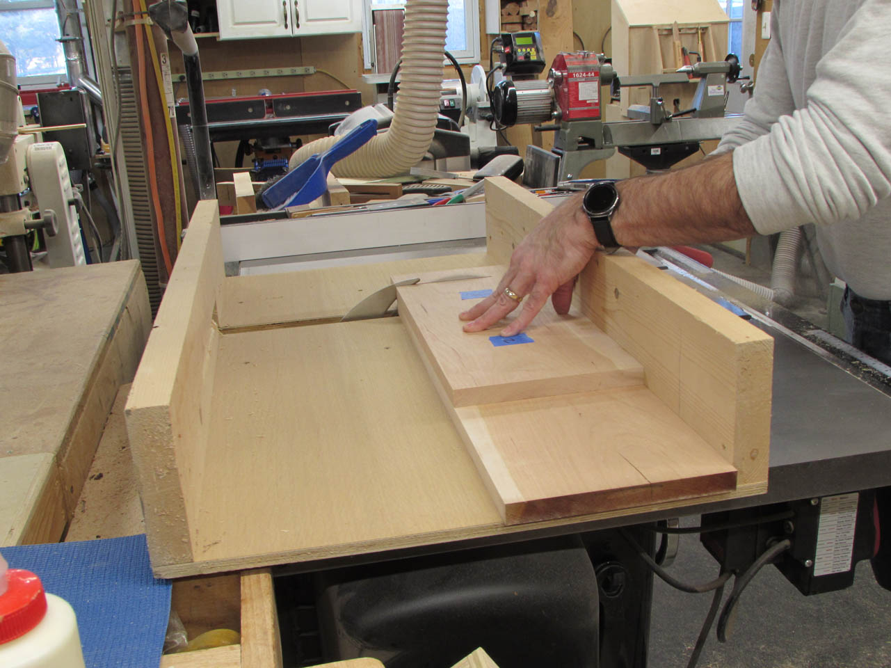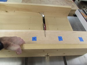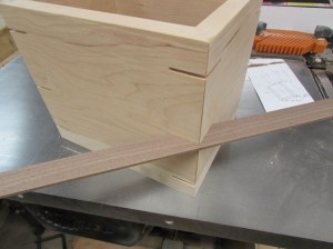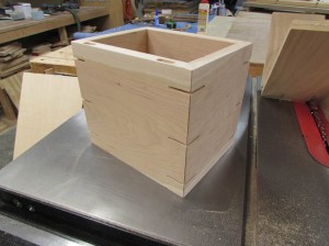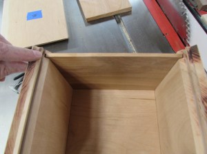 To hold in the bottom, I need to cut a 1/4″ dado along the bottom of the box.