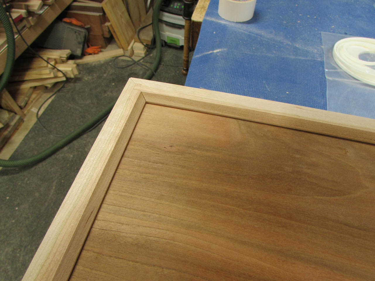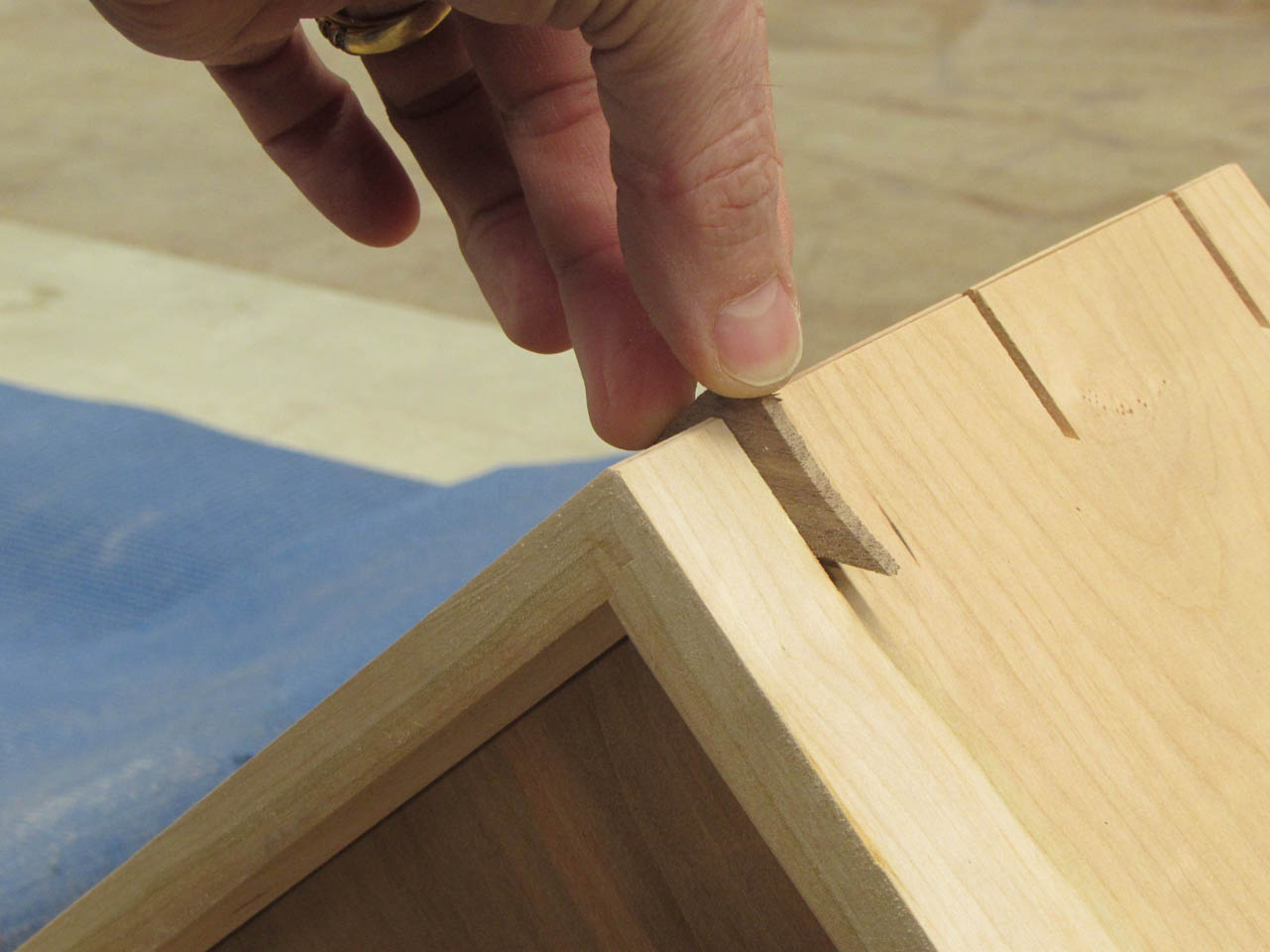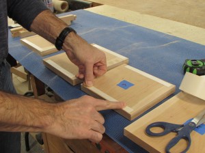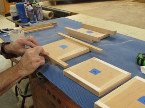 Then I apply a thin layer of glue along the lock miters and clamp it all together.
