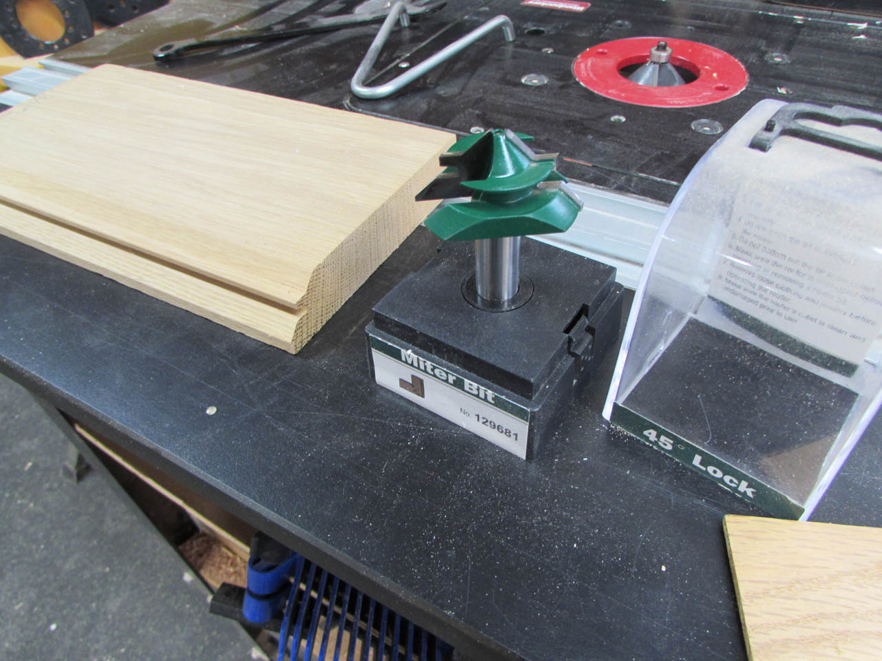The lock miter bit will cut a complex miter onto each adjoining edge leaving lots of surface for glue.