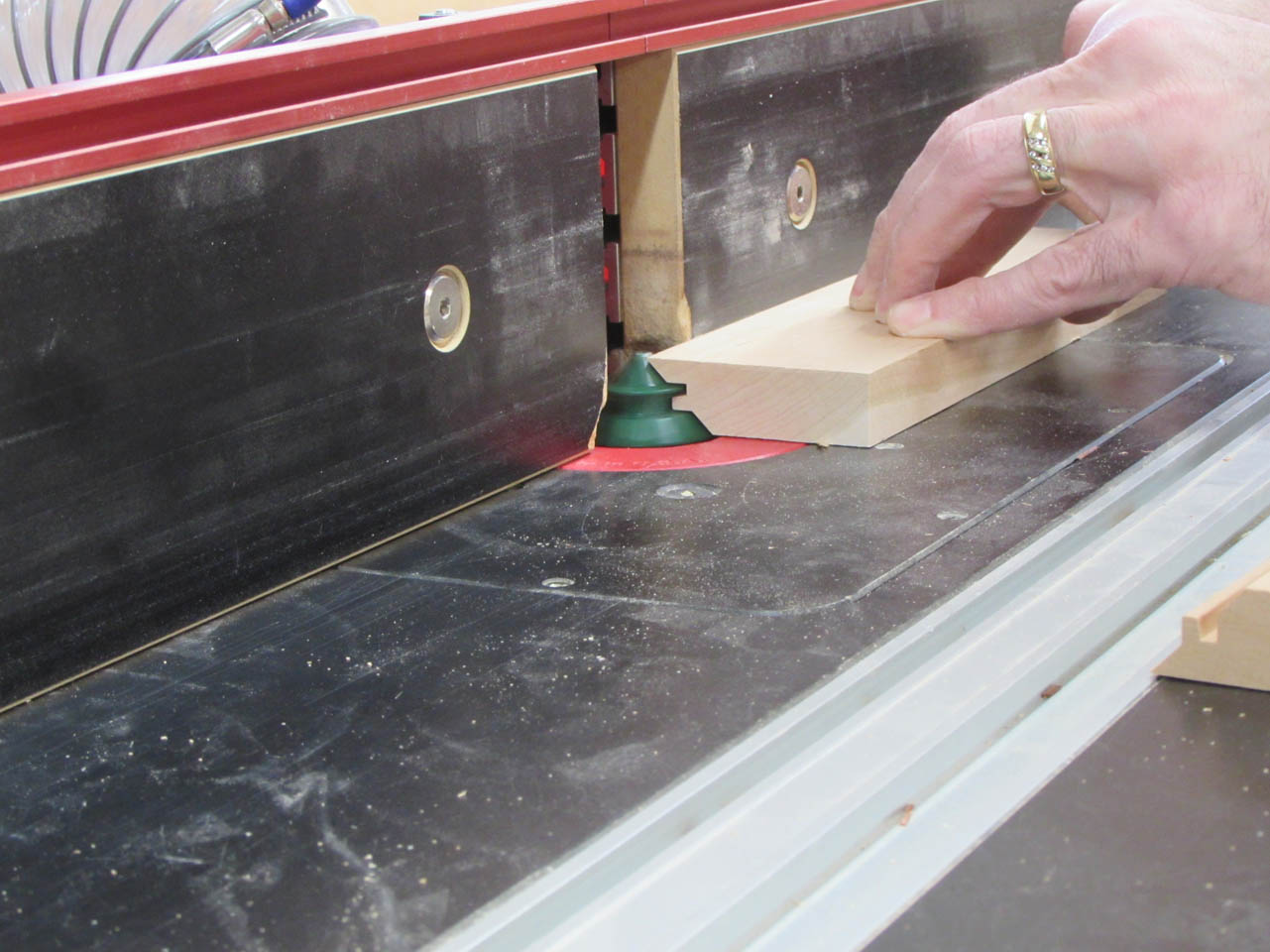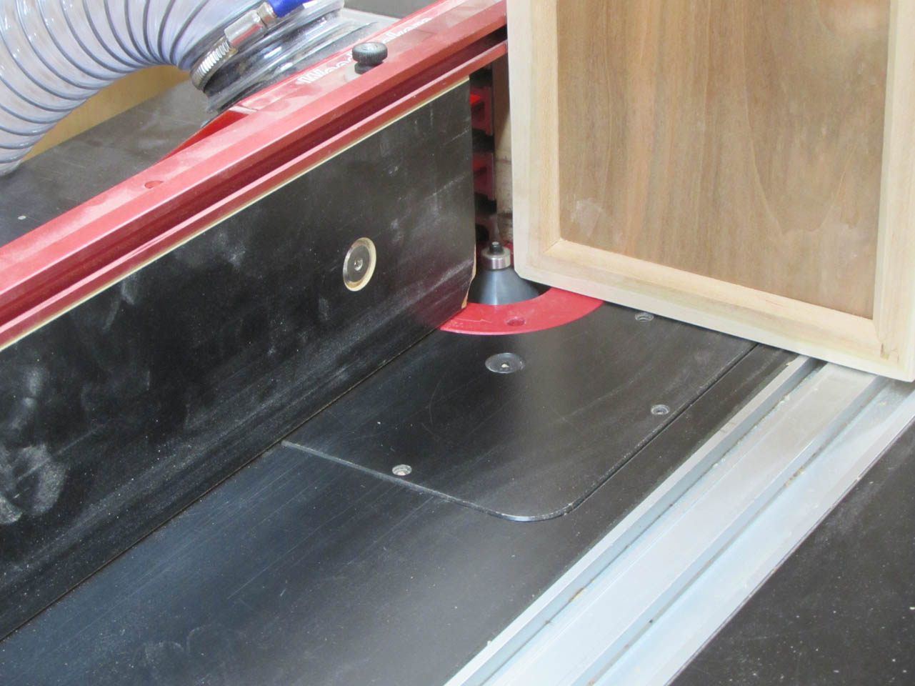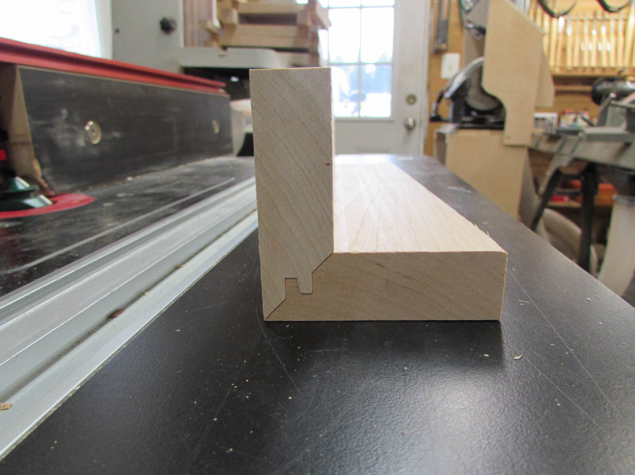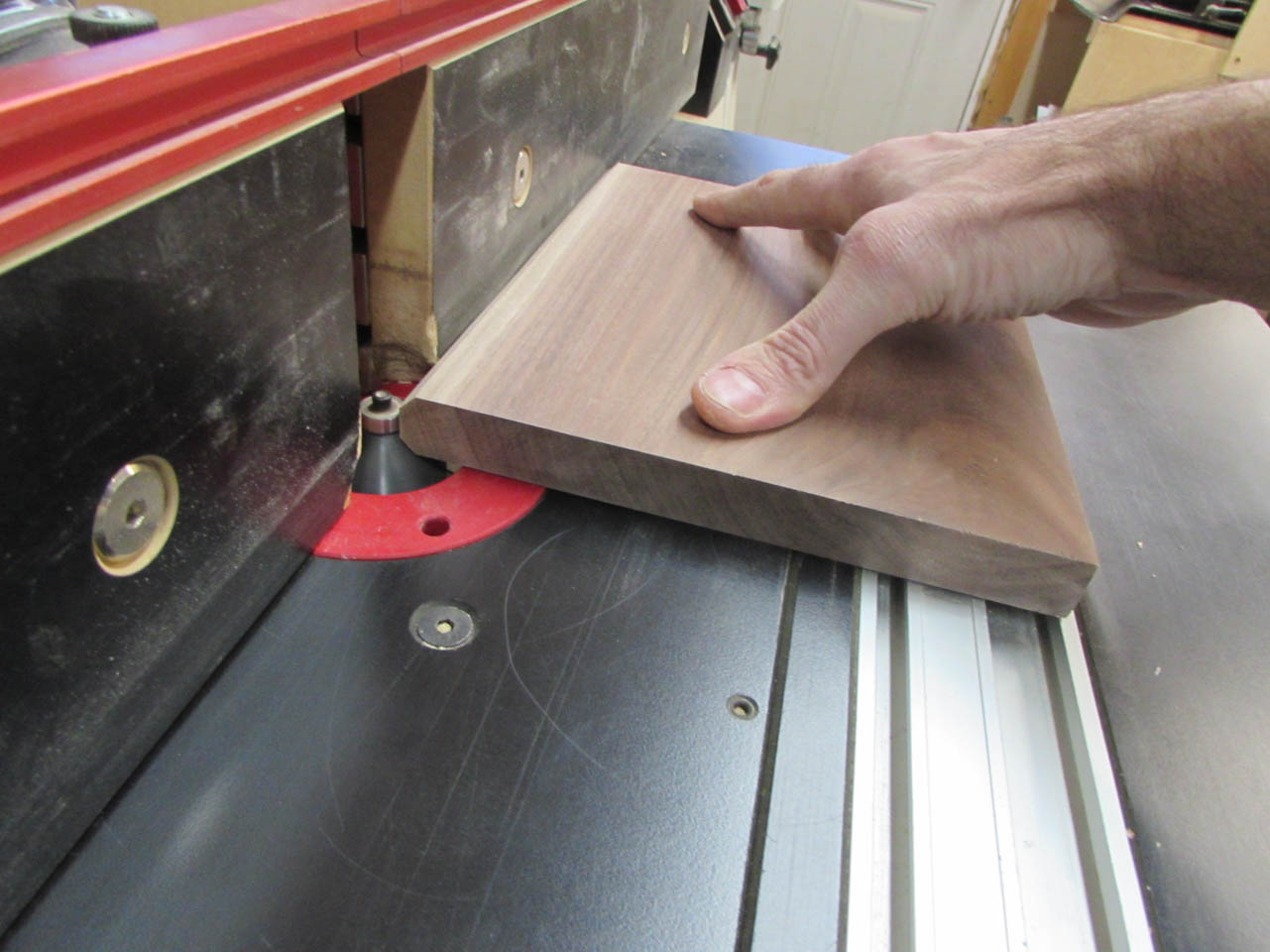 Before gluing it all together, I route a small chamfer along the bottom, inside .