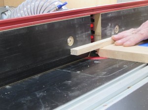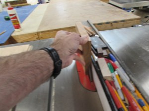 To create the bottom piece, I cut the cherry down to the proper size, then resaw it on the table saw to just over 1/4″ thick.
