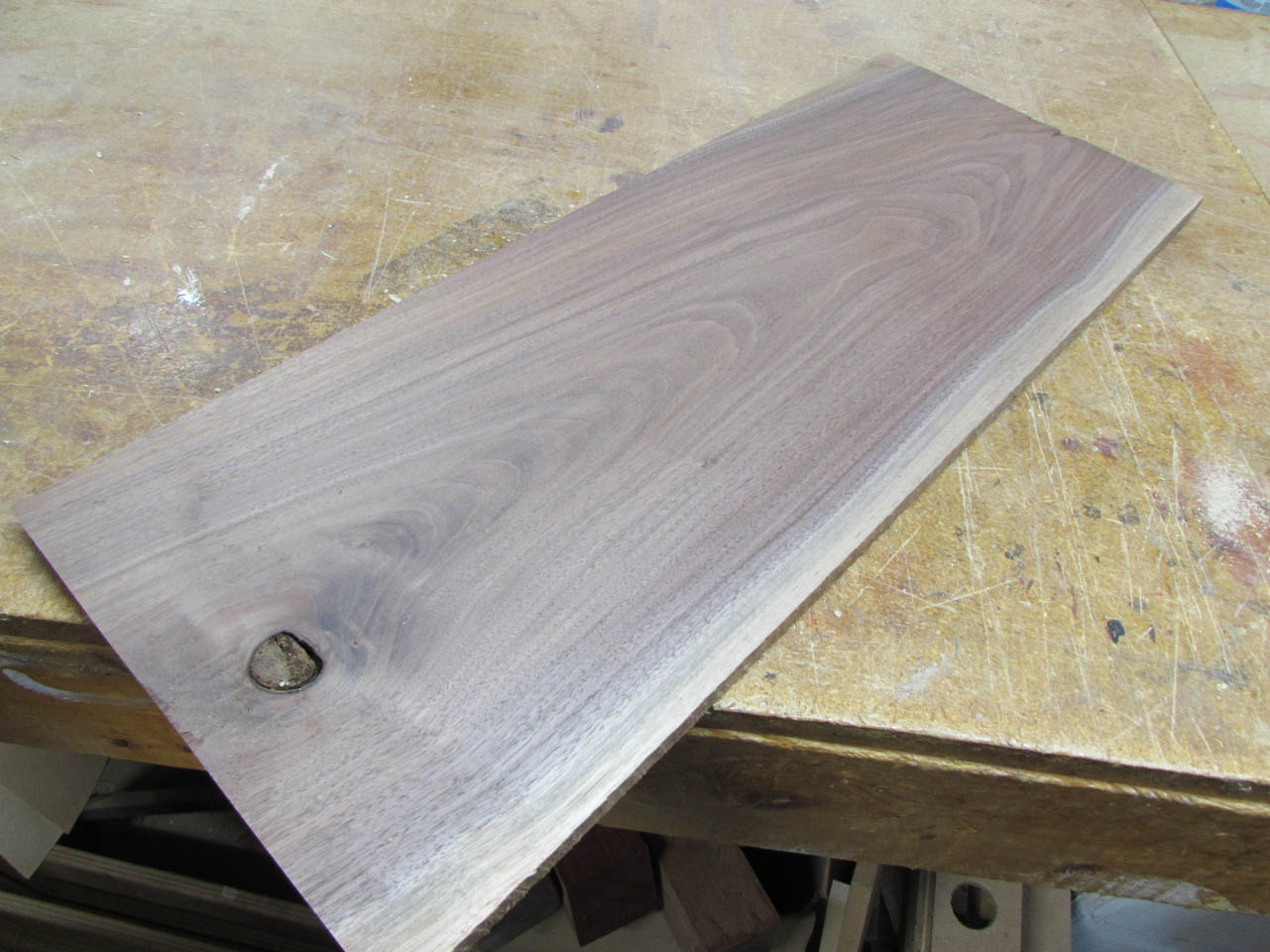 While that is drying I can get the lid started. I plane down the walnut to 3/4″ thick.