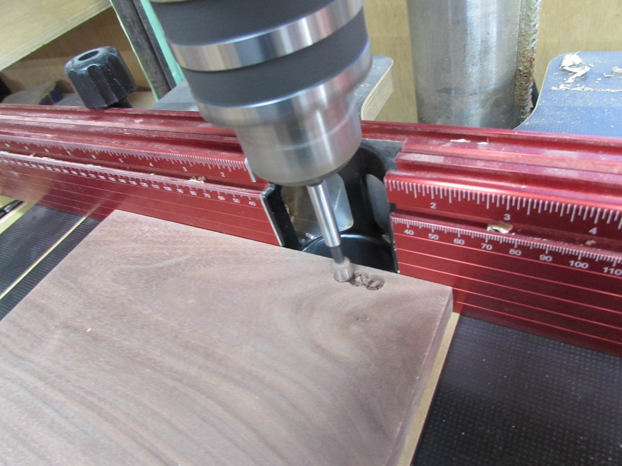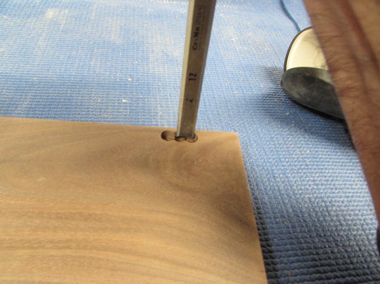 After marking, I can drill the required holes on the drill press and use a chisel to clean out the rest.