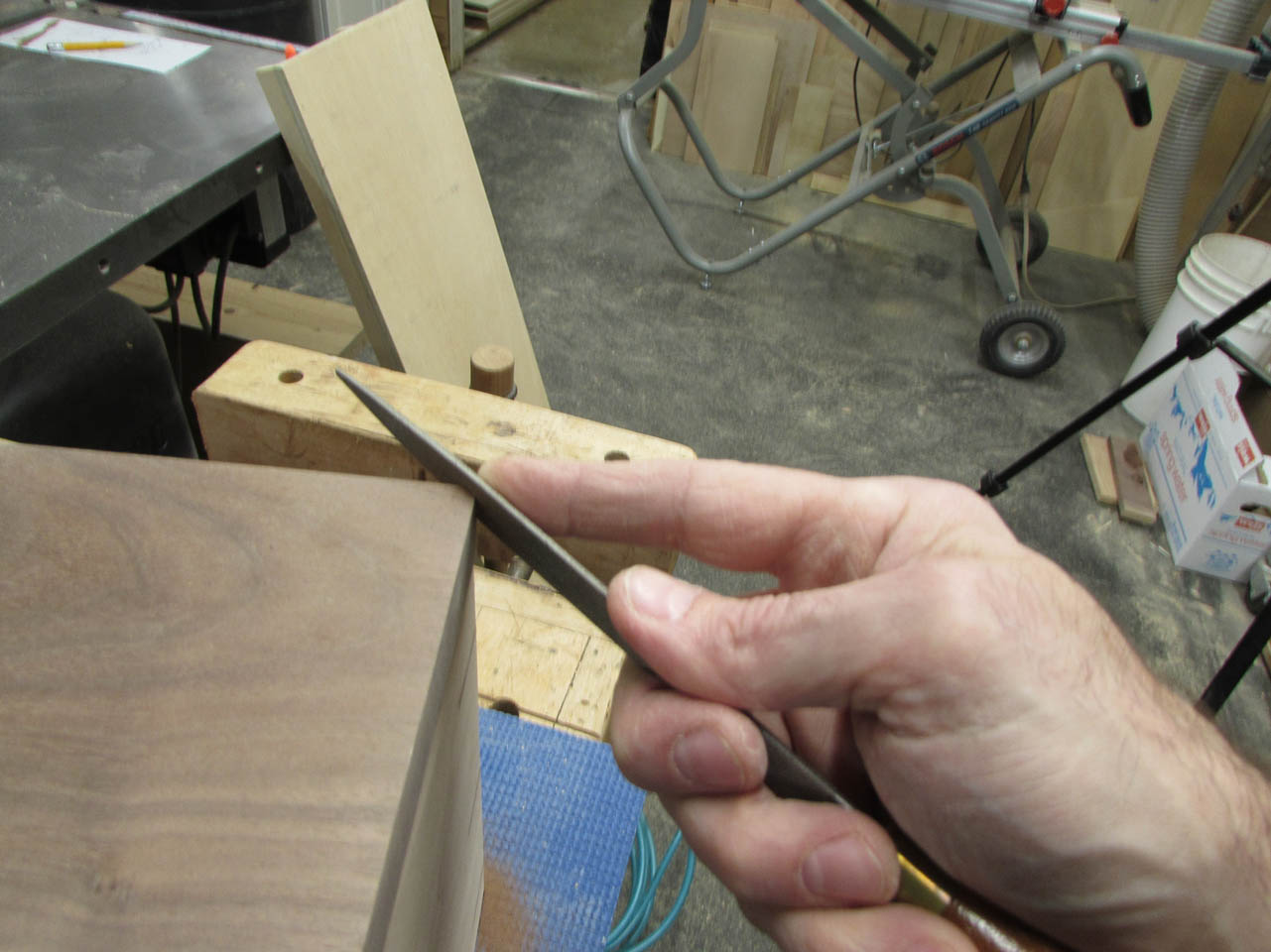 The last little detail is the chamfer on the back of the lid which needs to match the back of the box. I used a hand rasp and some sand paper to match it to the box.