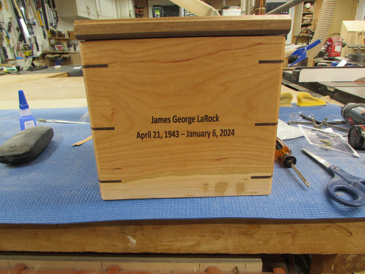 Jim’s memory box is finished. It was an honor to build this for you Jim.