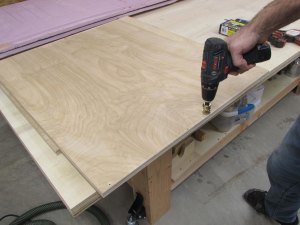 I used some temporarily clamped blocks to keep the plywood flush to the top or bottom when screwing the panel on.