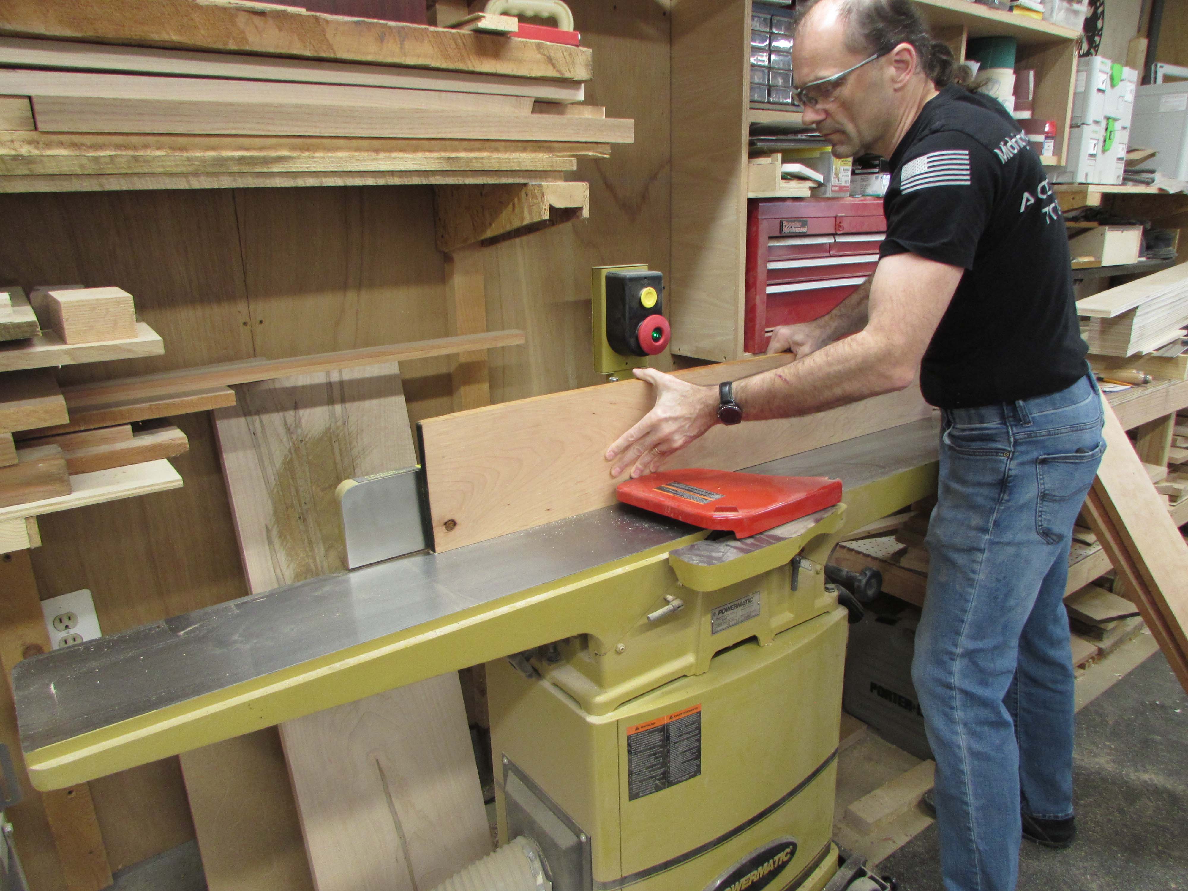 I roughly cut the cherry down to a few inches longer than needed so that I could plane and joint the boards more easily.