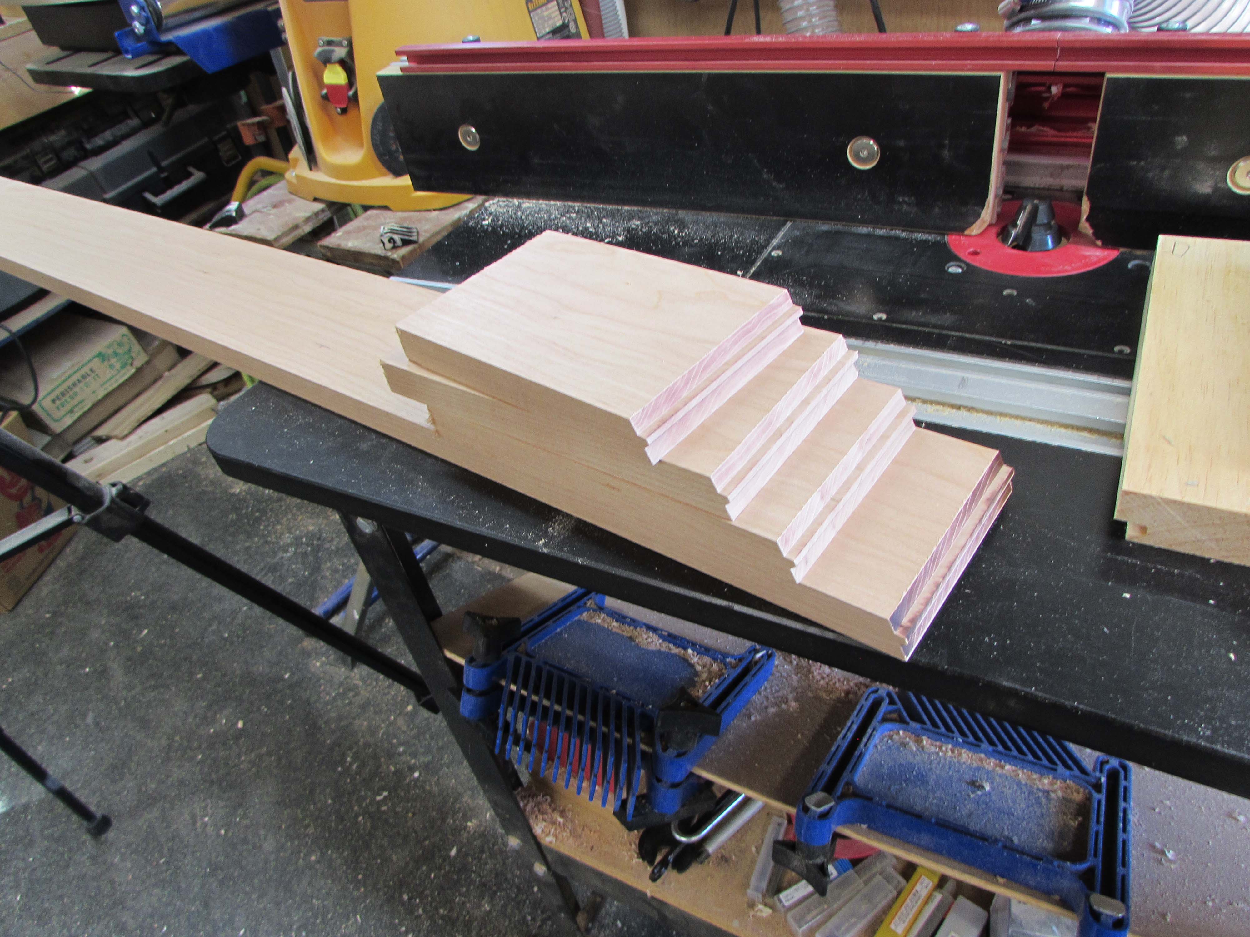 Since the router is set up, I also cut and planed the boards for the face of the cabinet.