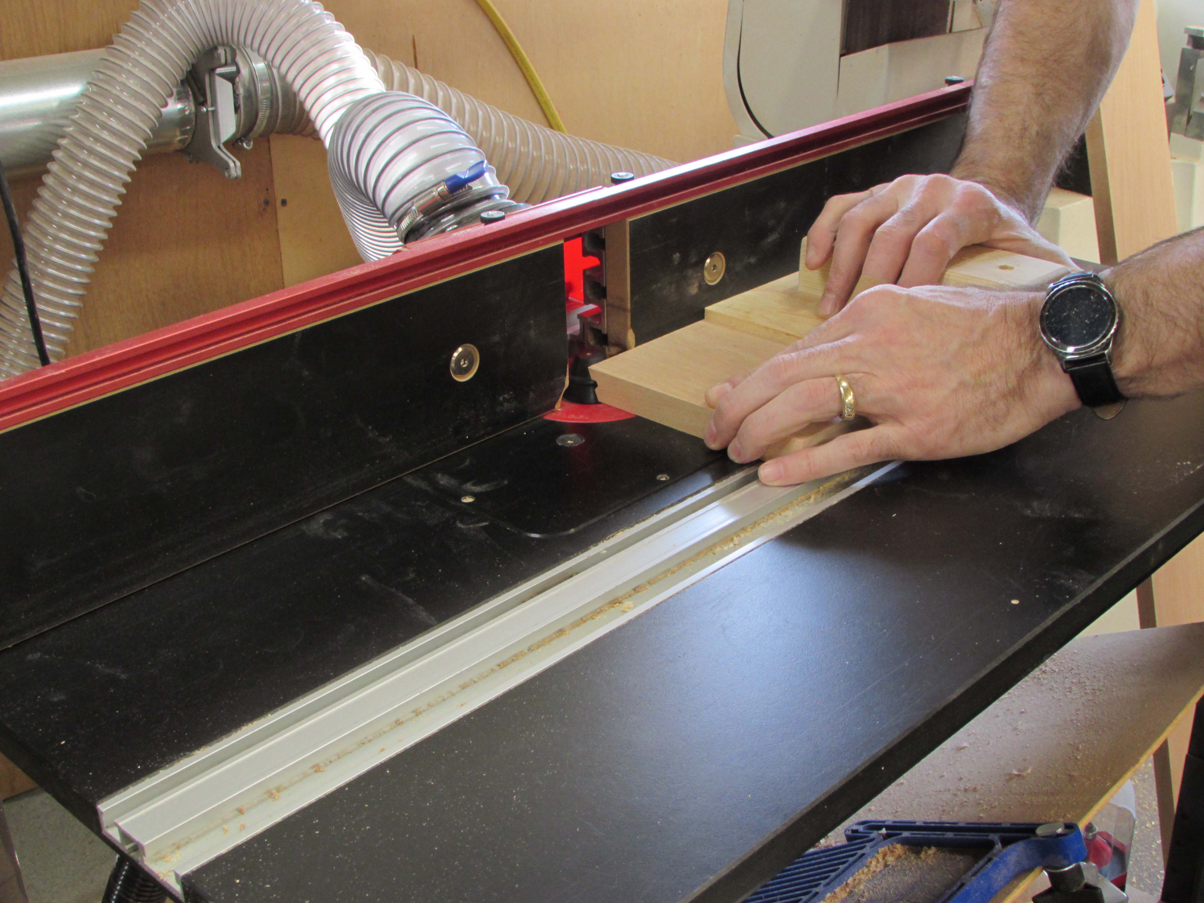 I made a push block to help prevent tear-out as the bit exits the wood.
