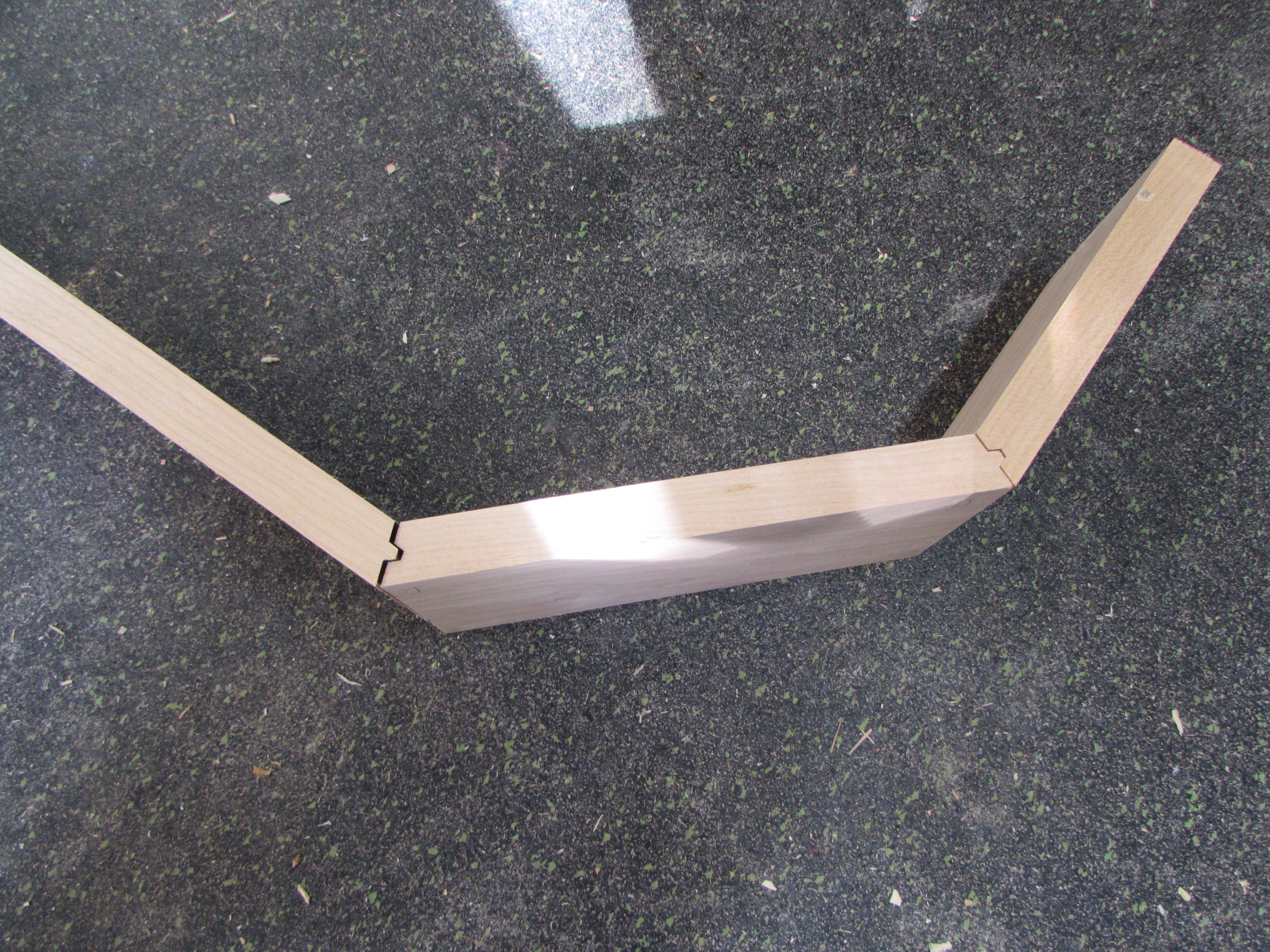 I need to cut a few more boards that will have standard 90° corners, then I can start gluing it up.