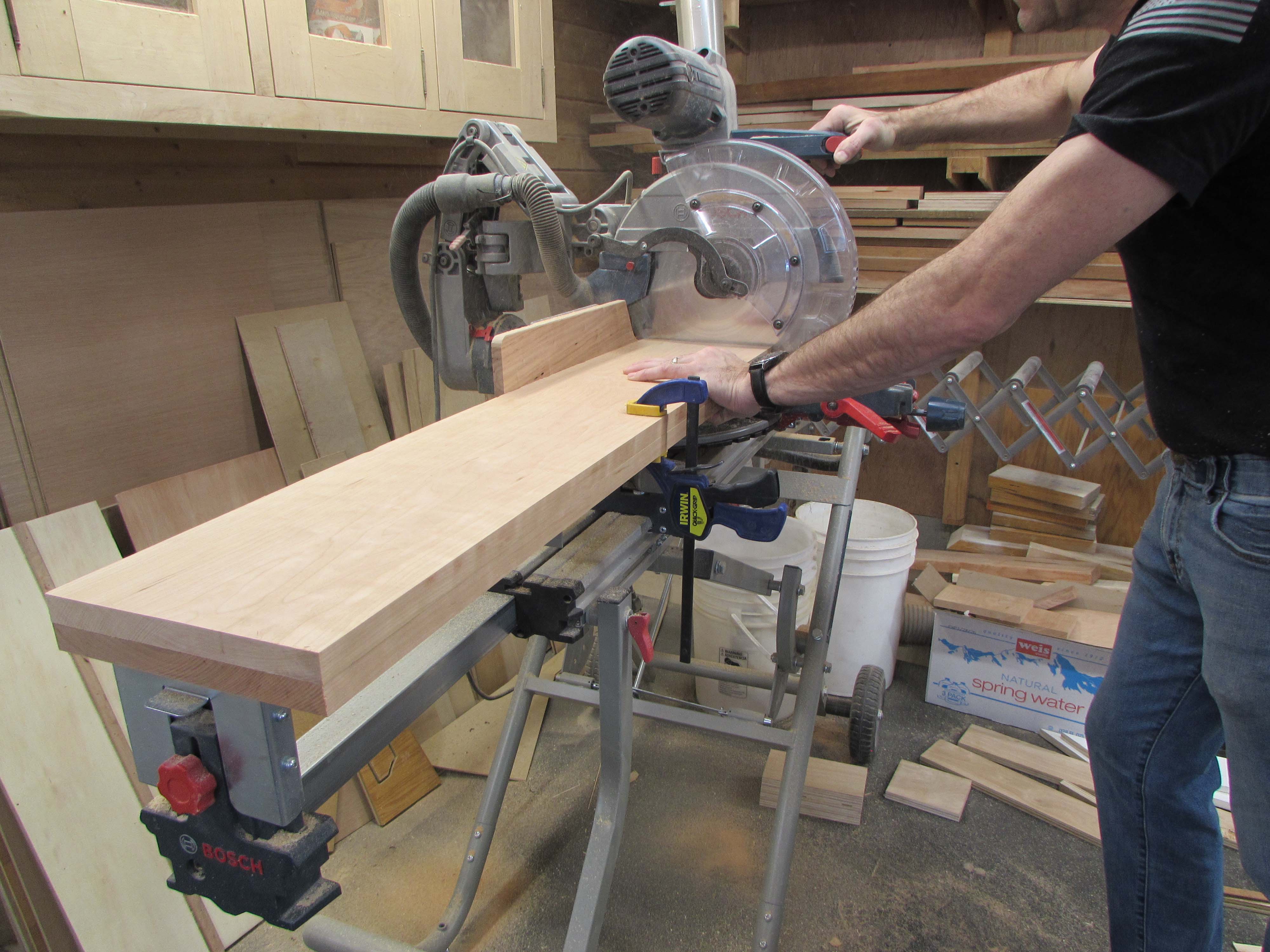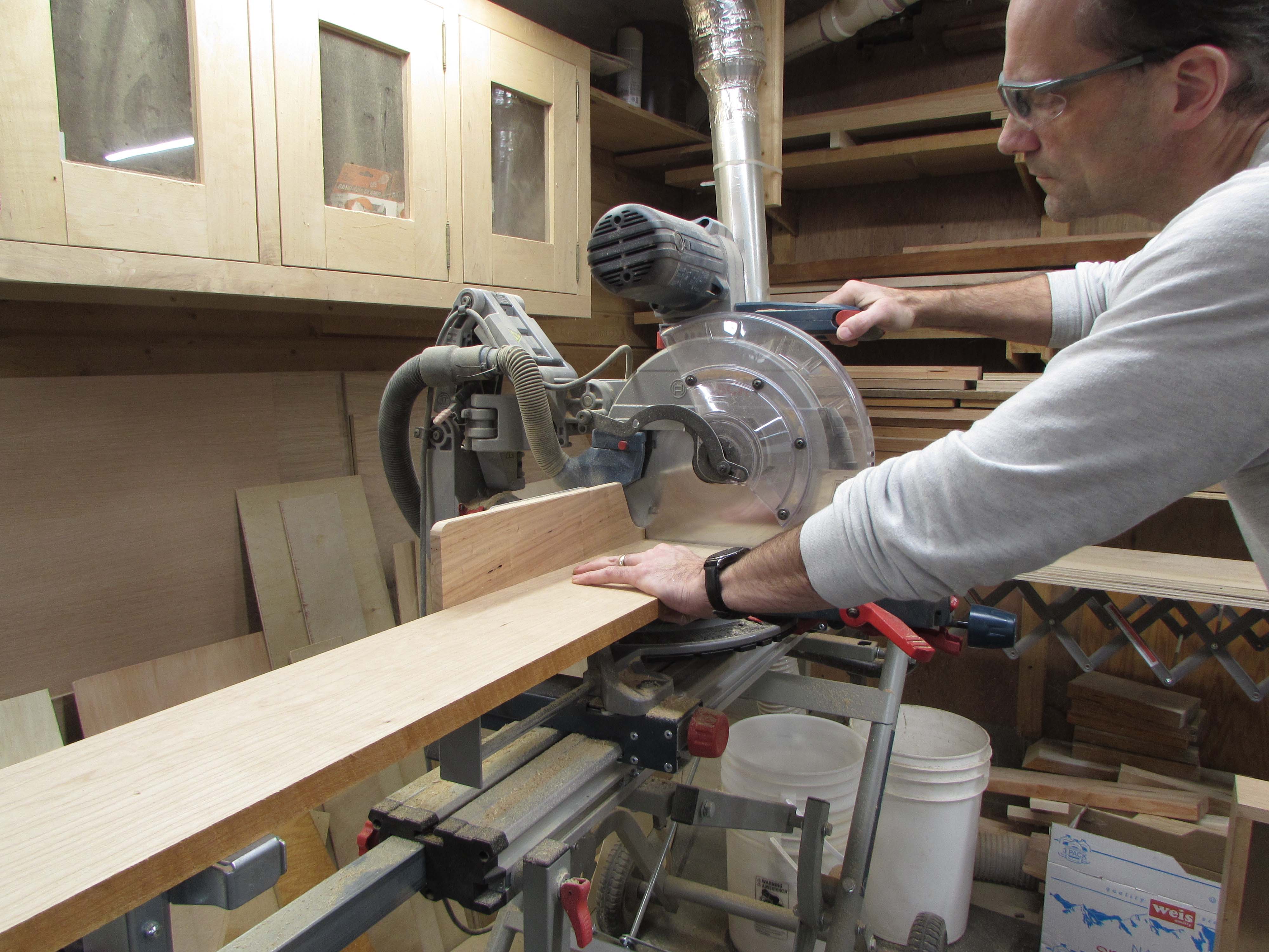 To keep it all the same length, I ganged several boards together to cut all at the same time.