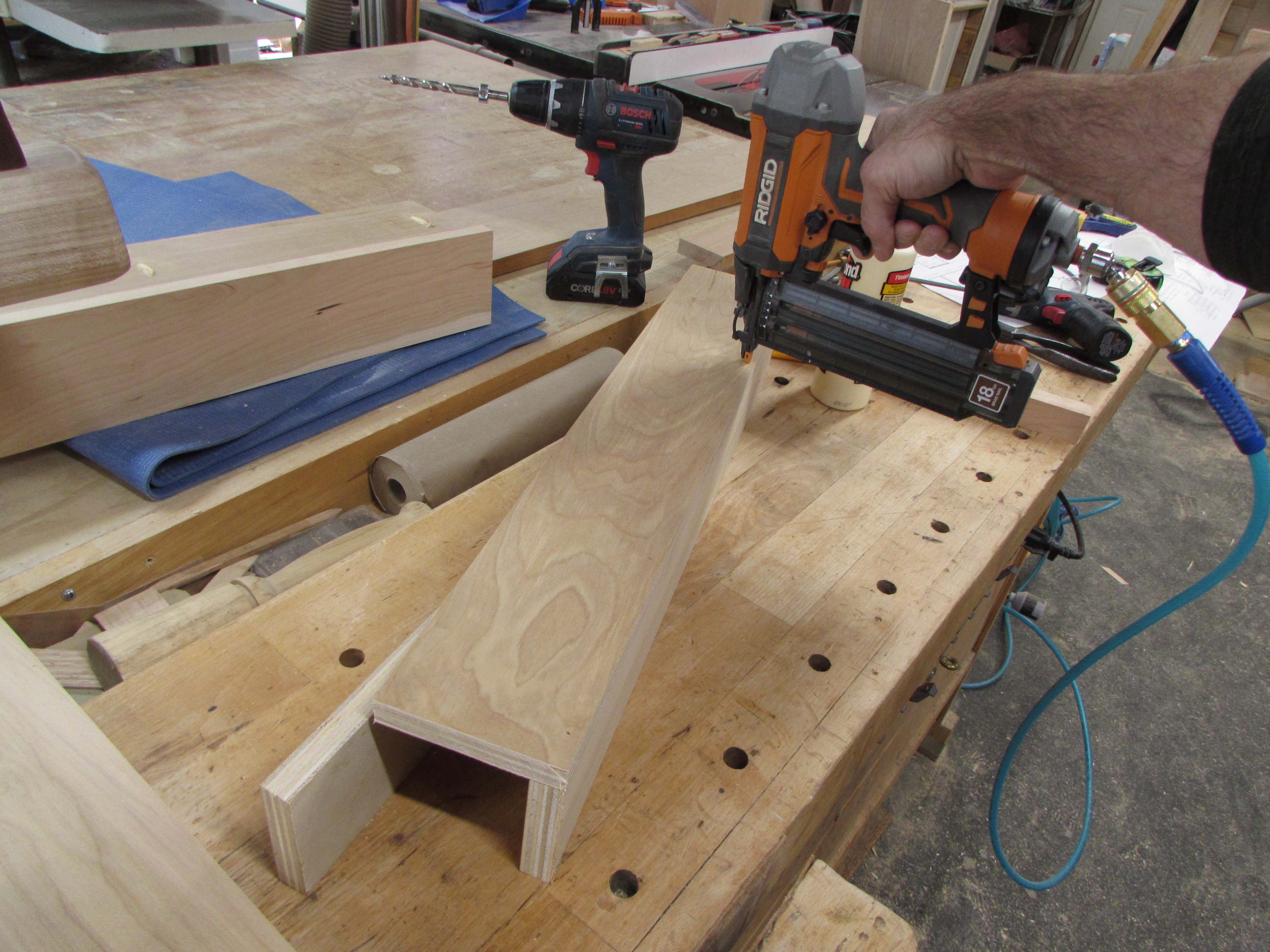 The rest of the base structure was assembled with a combination of glue and brad nails or glue and pocket hole screws depending on how it needed to be attached.