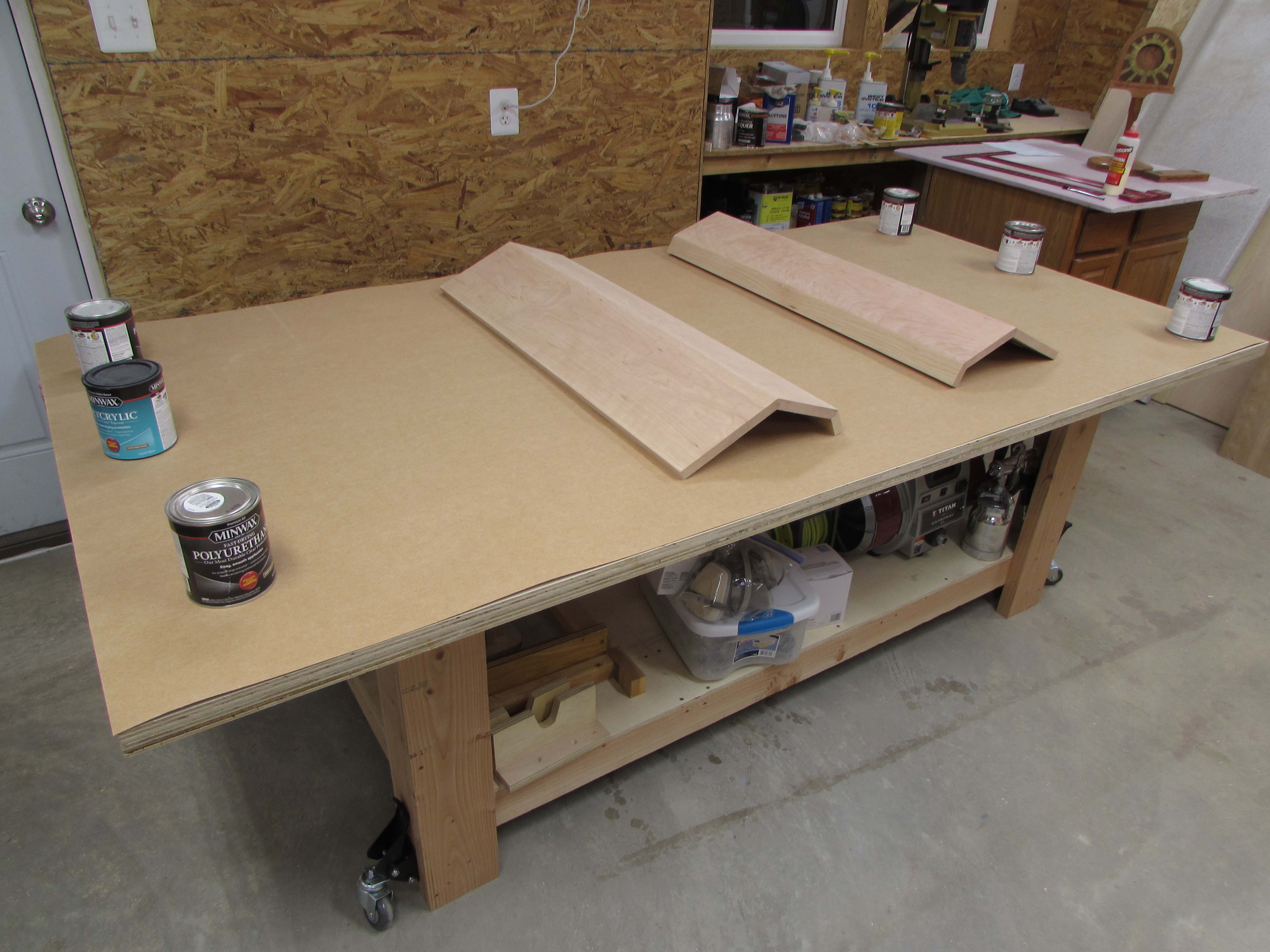 I finished the small front section of the base and set it aside to dry while I continued cutting the rest of the plywood for the base.