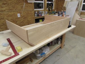 I cut up the next sheet of 3/4″ plywood and started assembling the rear section of the center cabinet. It has to be multiple pieces to fit through the door.