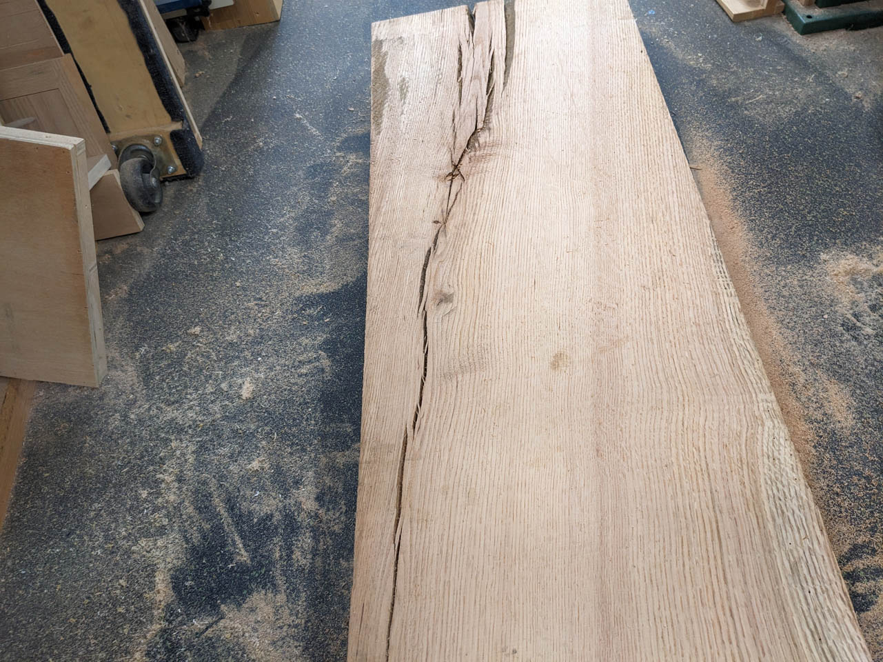 I had a few pieces of quarter-sawn red oak when I made those door panels and they are striking when the sunlight hits them just right. So, of course I had to find some large pieces of quarter-sawn red oak for the doors of the new cabinet.