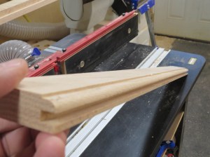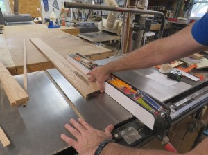 After jointing and planing, I ripped my boards down to 2″ wide on the table saw.