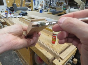 A little glue gets applied to the ends of the horizontals and I can clamp the panels together.