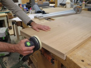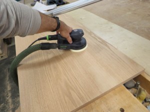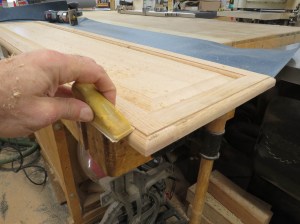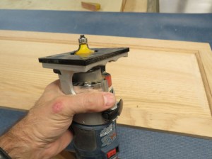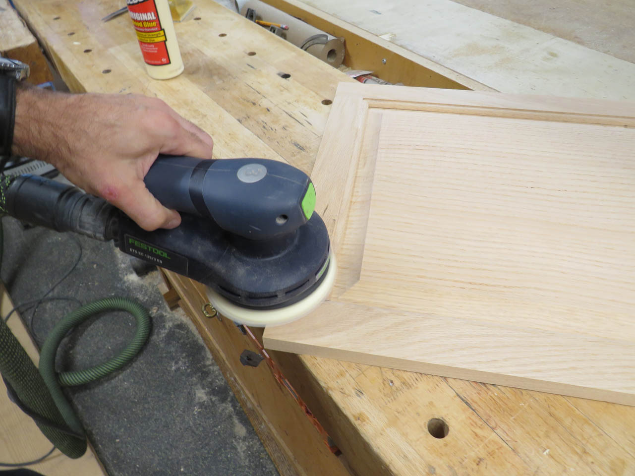 After the round-over is applied with the router, I hand sand all the edges and set the doors aside for finishing.