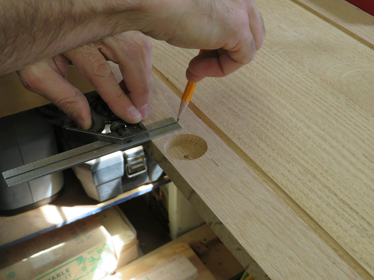 I also laid out the screw locations on the template so I can set my combination square to that depth for transferring to the door once drilled.