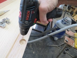 Once I mark the door where I need the hinges, I can drill the large pockets.