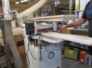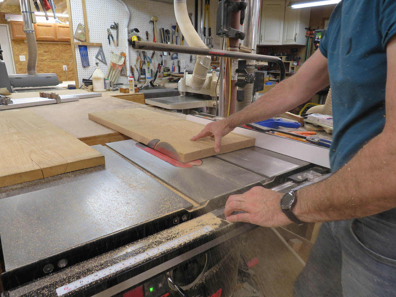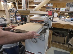 This board happens to be just wider than my planer so I jointed one side and cut the panel width down to 14-3/4″ wide to barely fit in the planer. I also cut down another piece to be joined to that one to get the proper width counter top.