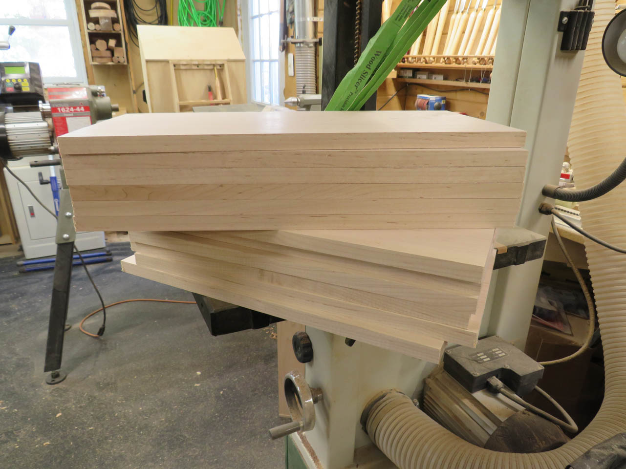 After they dried, I planed all of my maple down to 5/8″ thick. This is the maximum width that my undermount drawer slides will accommodate.