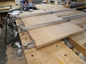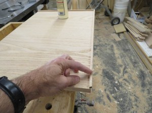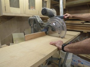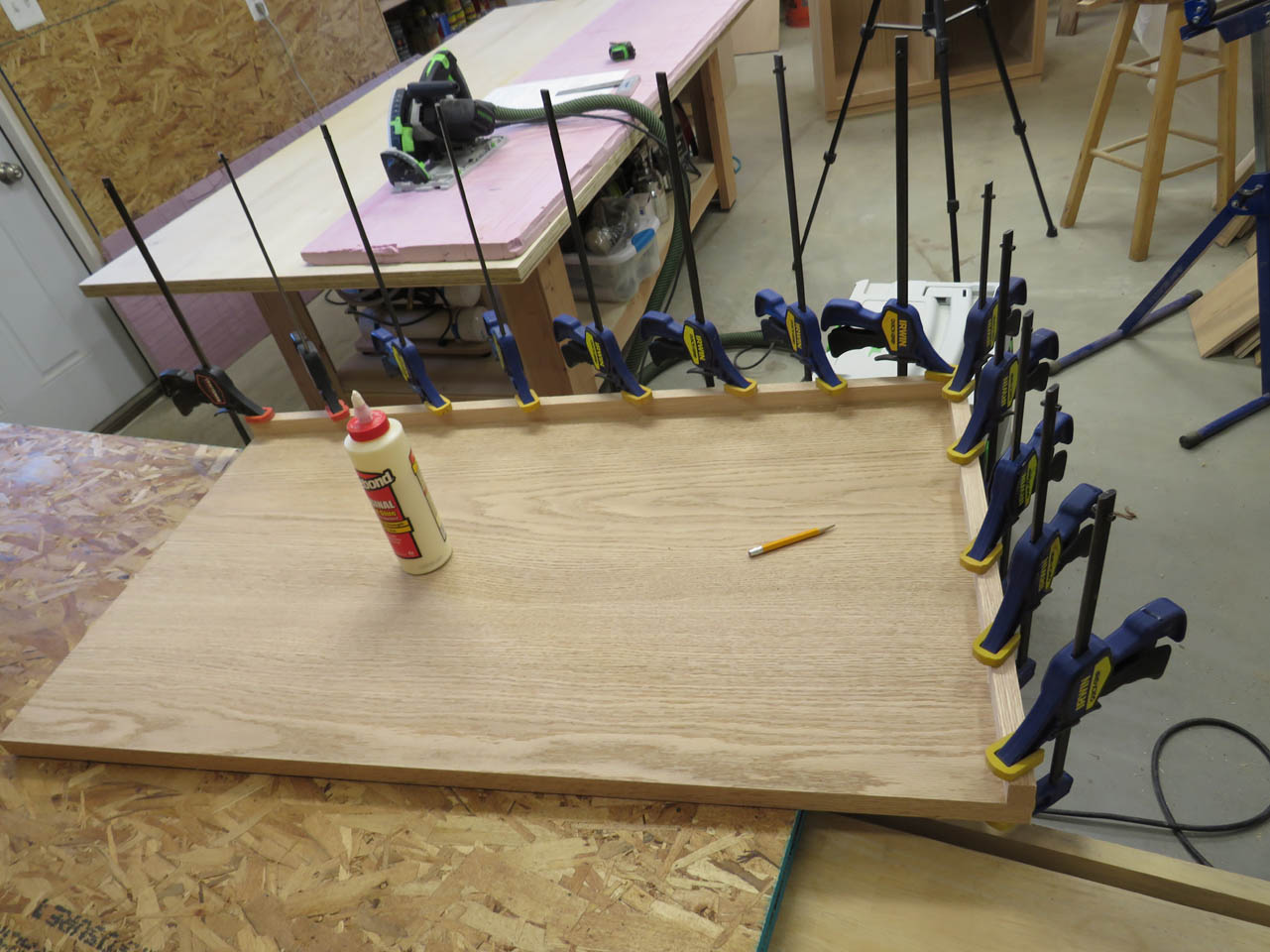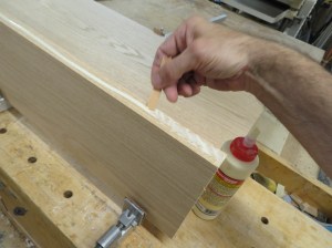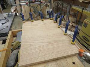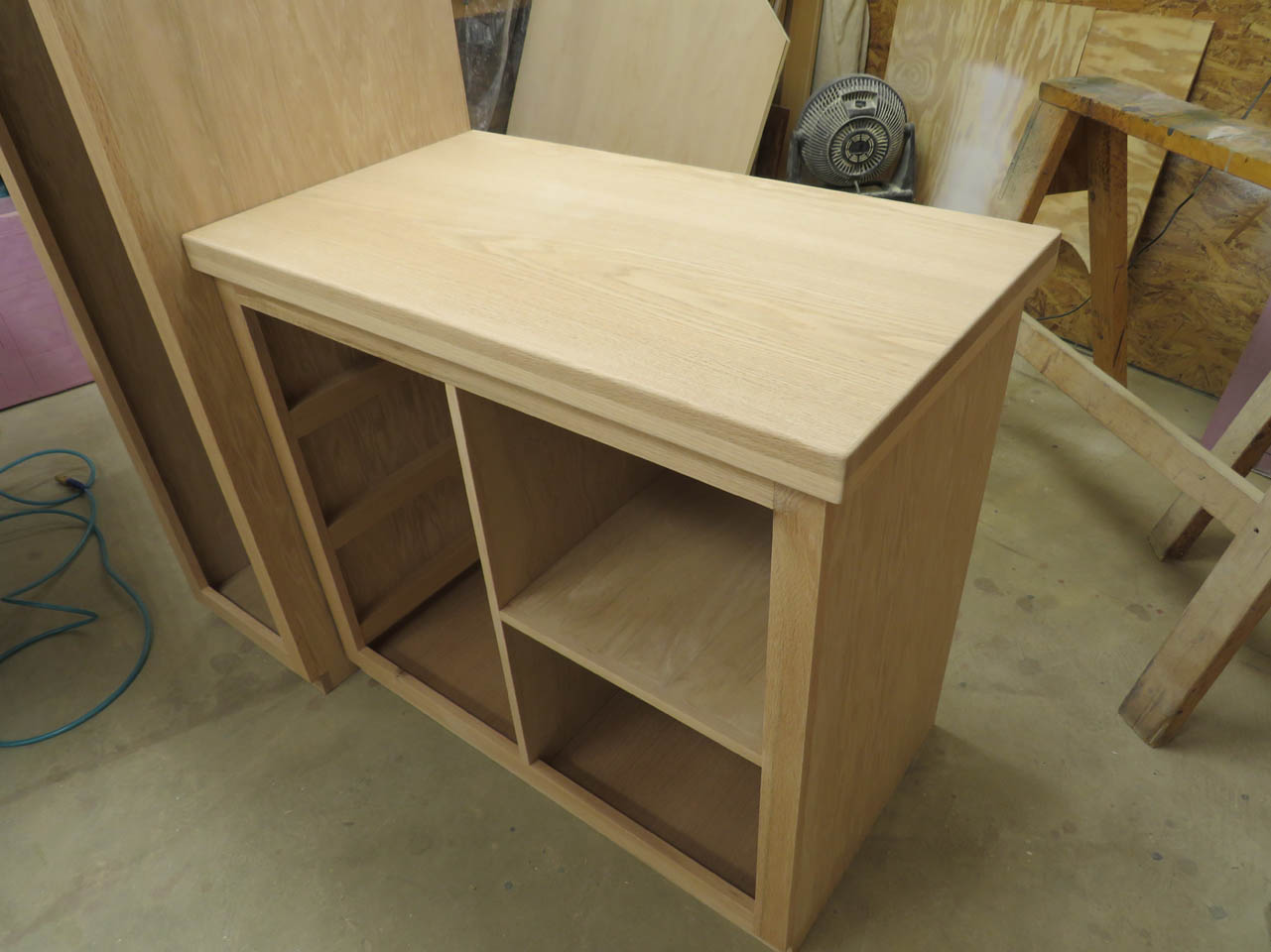 I also cut and glued up a piece of 3/4″ thick oak for the top of the taller cabinet. It doesn’t require a thick counter top since it is basically just a shelf.