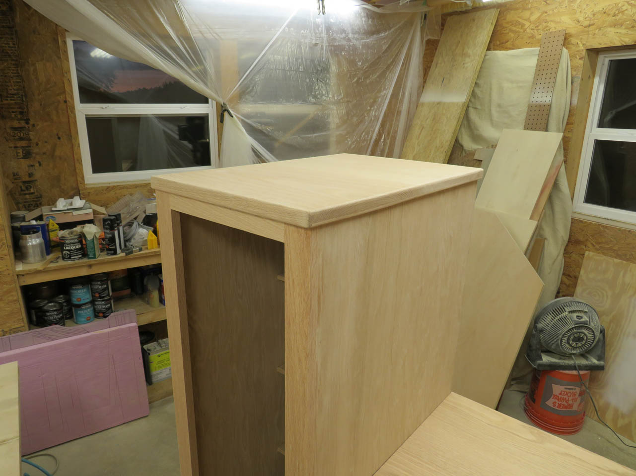 The final piece of this project will be the counter top and the cap on the tall cabinet.