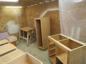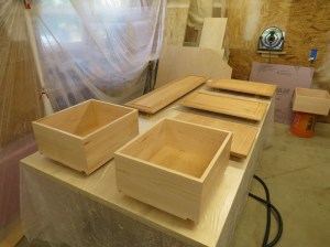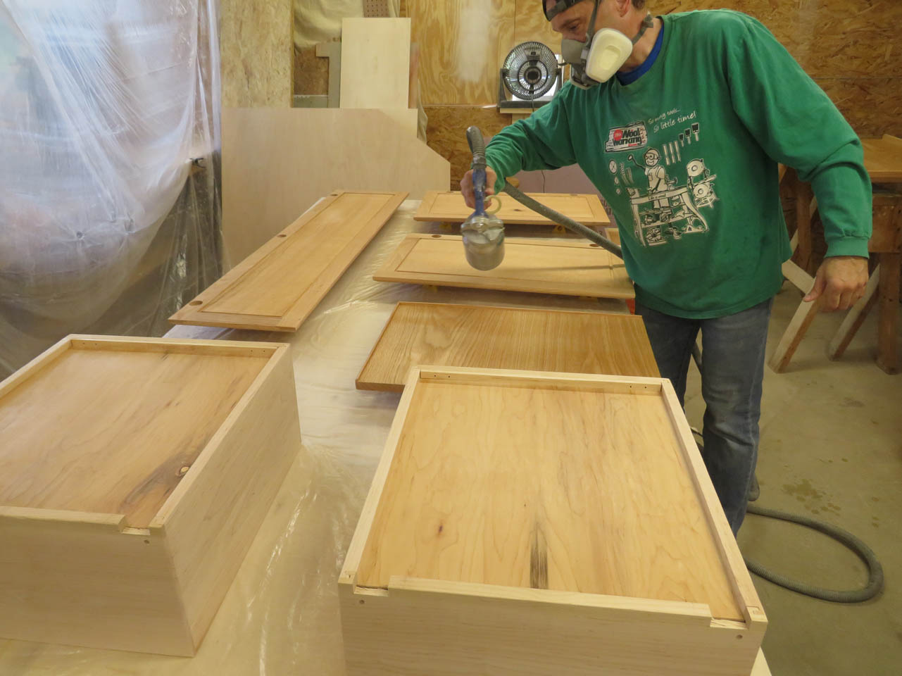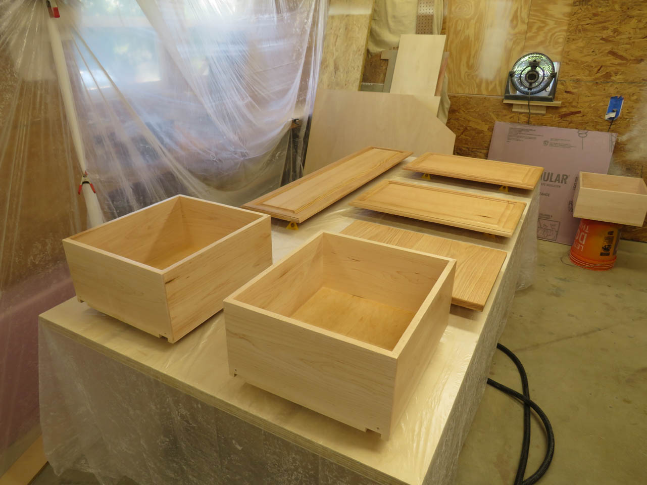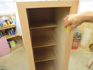 Finishing is one of my least favorite parts of woodworking. Especially with cabinets. I really should have masked off everything and pre-finished before gluing up the cabinets. It would have taken longer but it would make a nicer product in the end. I am just always so eager to be finished…