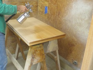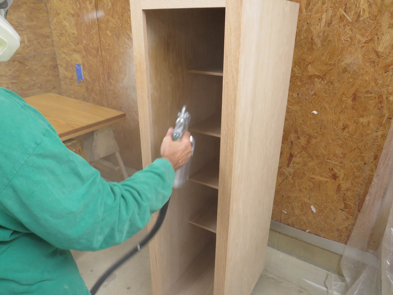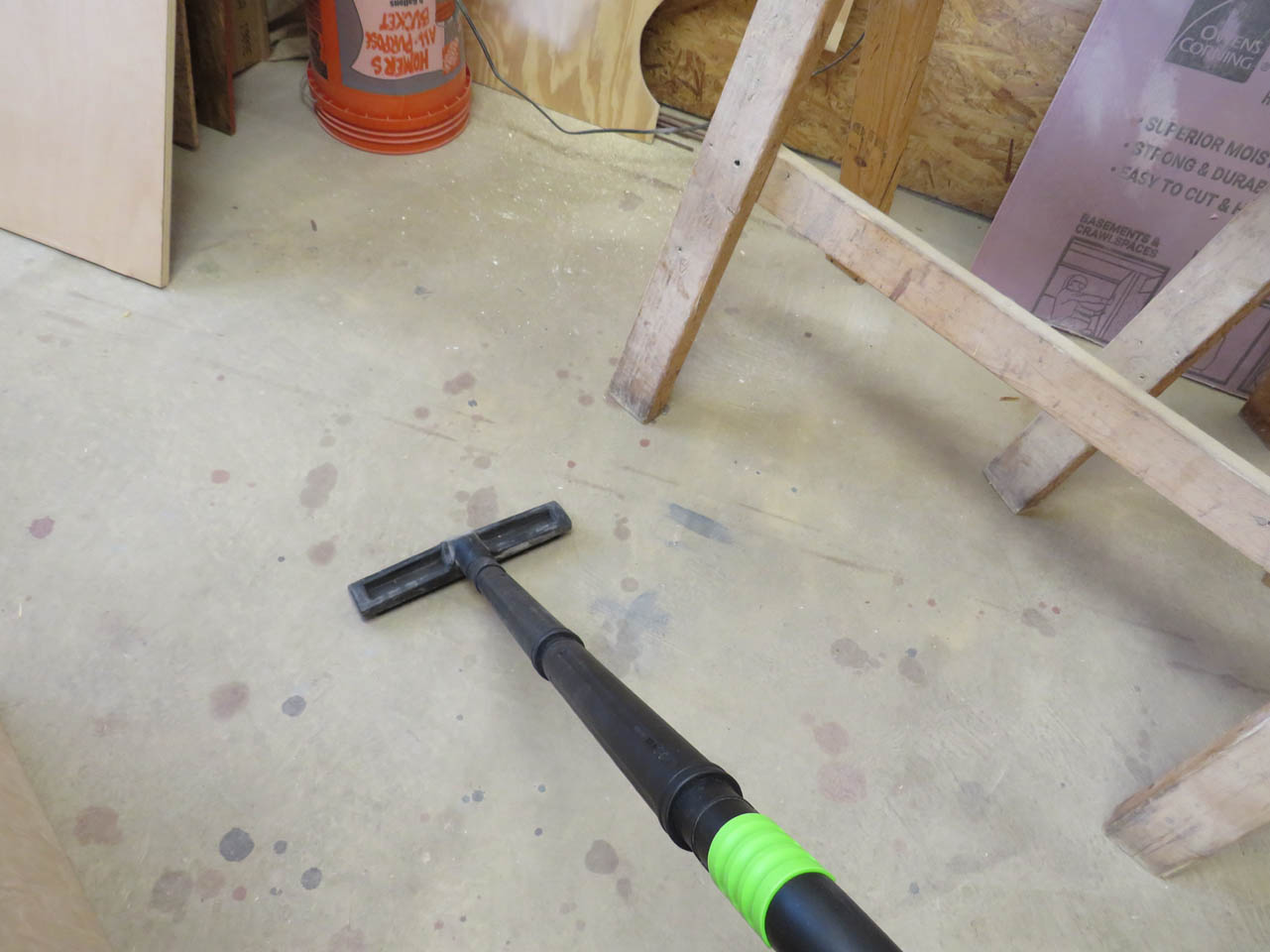 Next, I vacuum the floor and other surfaces in the spray booth. This prevents the dust from blowing around and settling onto wet finished surfaces.