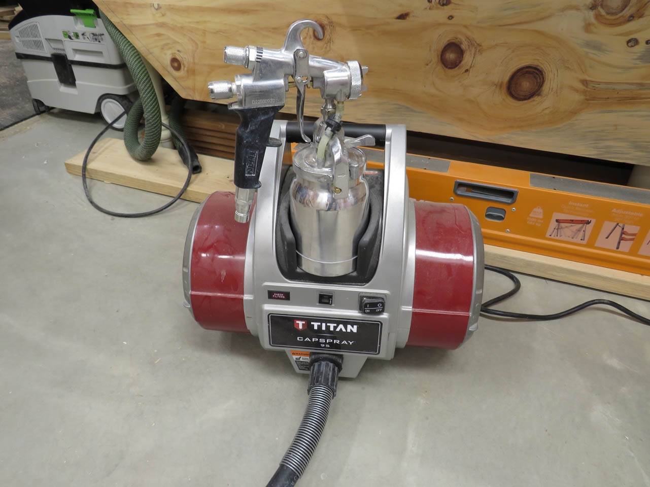 The Earlex is definitely easier to use because it mainly has only one adjustment, but I like the Titan’s long hose that lets me leave the compressor outside the spray booth. The Earlex sucks up a lot of overspray that has to be cleaned off.