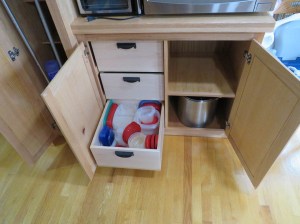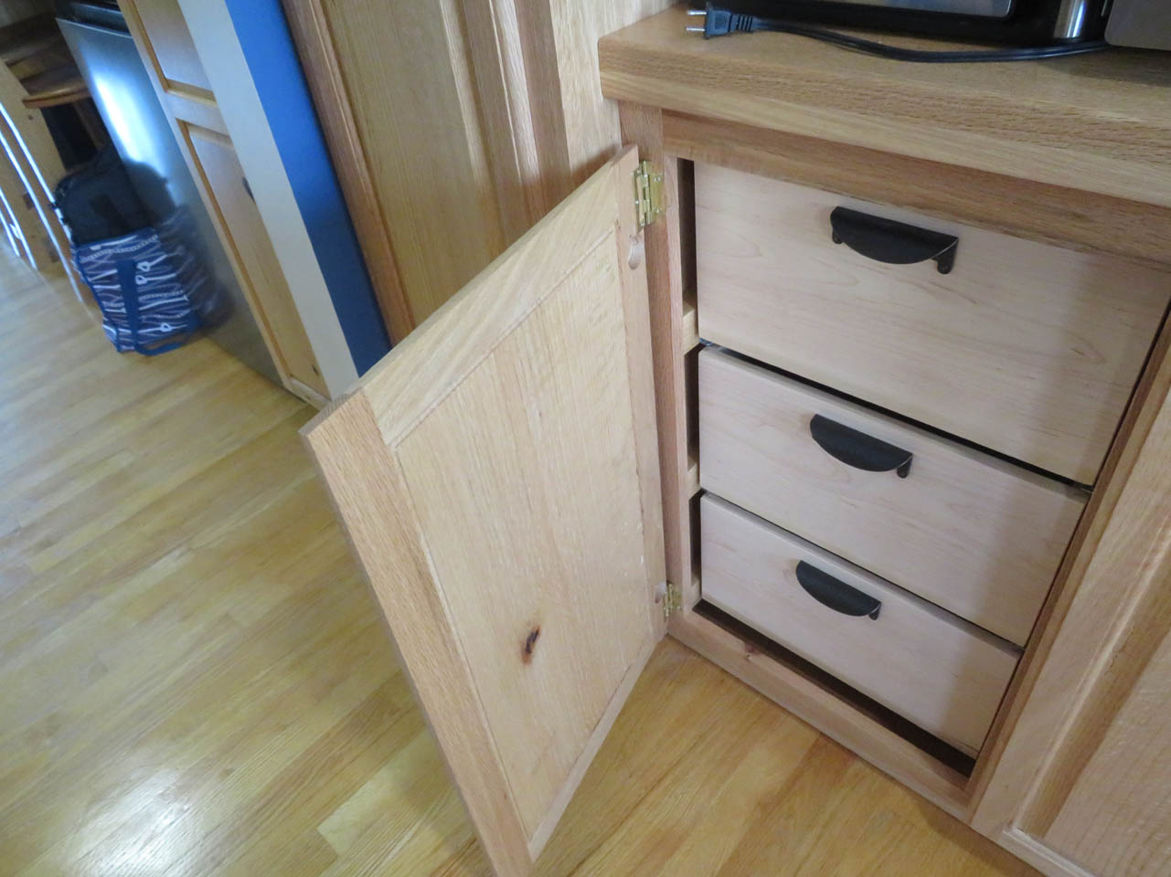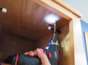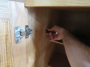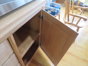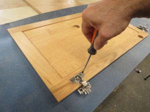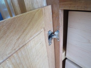 The first door went on great but the next, not so well. Belatedly I noticed that the hinges would be in the way of the drawers. Two of the drawers won’t be able to open.