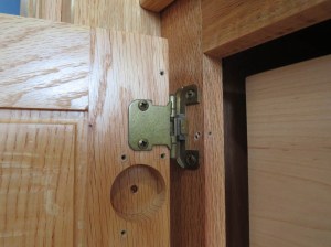 These worked surprisingly well. The only problem is that I have two hinges visible and that does not match any other cabinet door in the room, but I can live with that. They are mostly in shadow anyway.