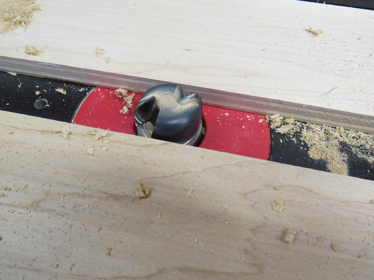 Then I set the fence so the bit barely touches the clean surface of the dado cut.
