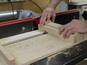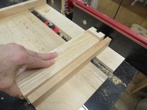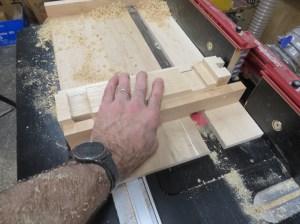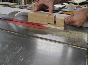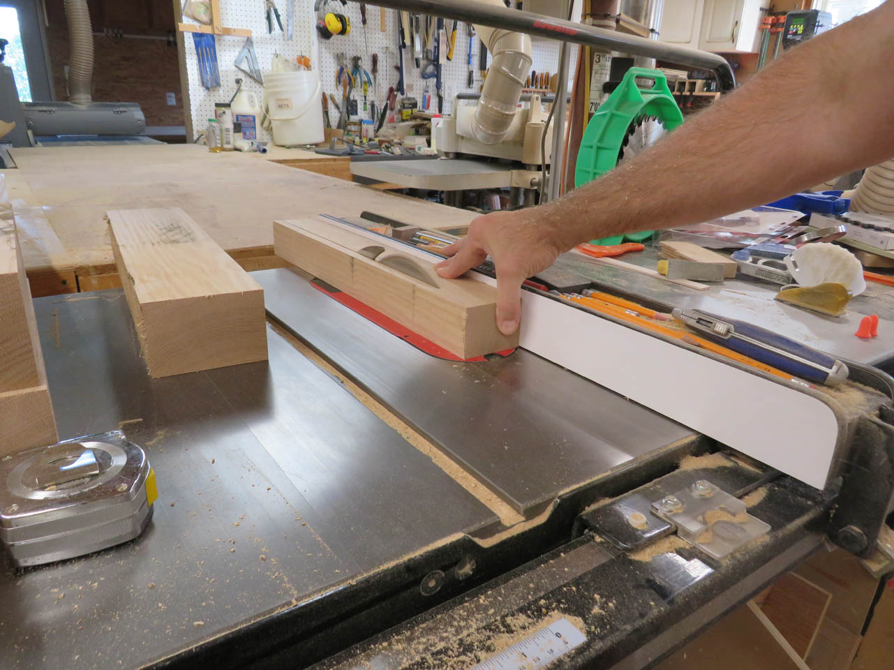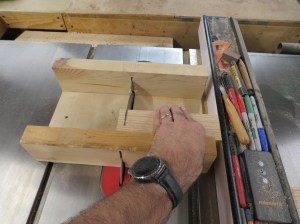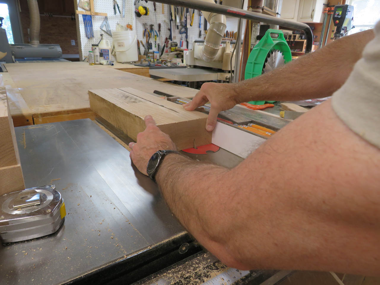 The second reason for the dado is now apparent. I can set the blank against the fence, placing the blade in the dado, then cutting most of the waste off easily.