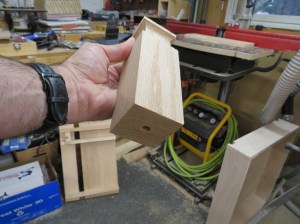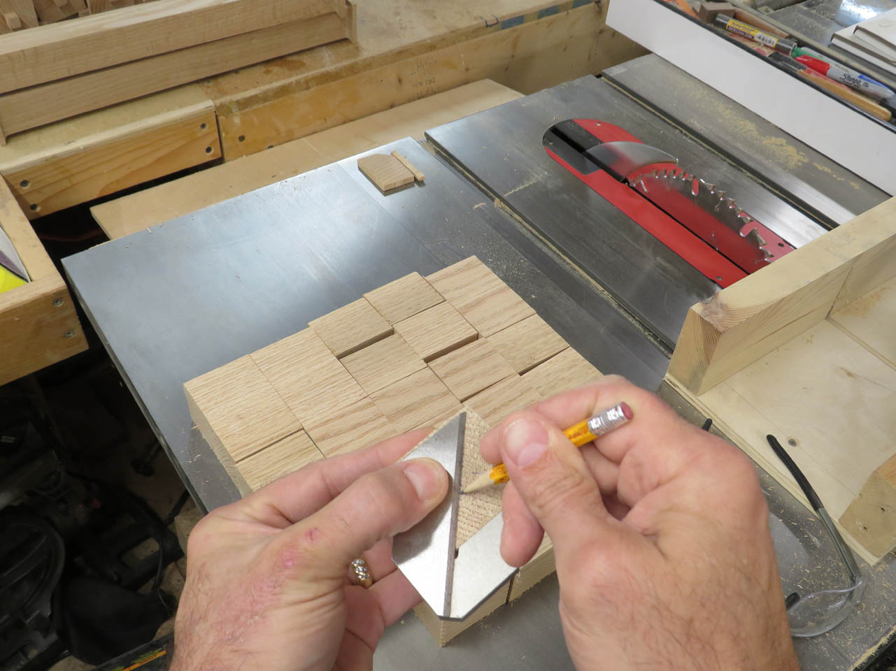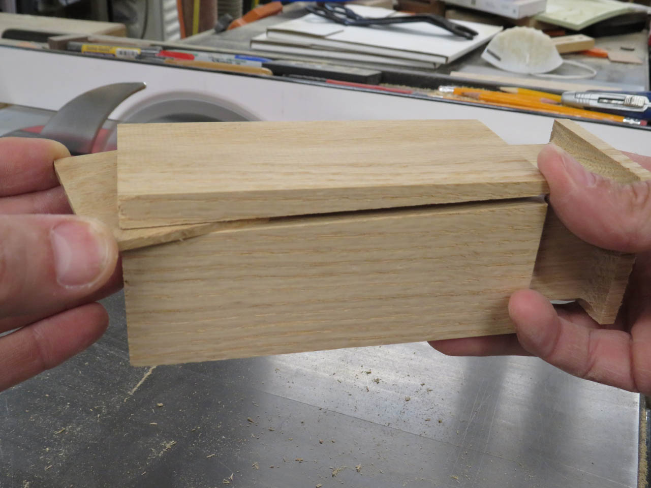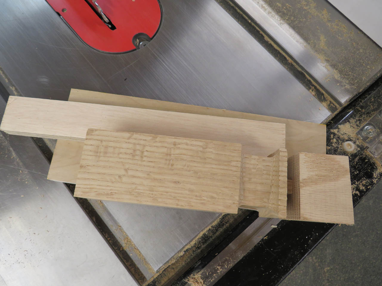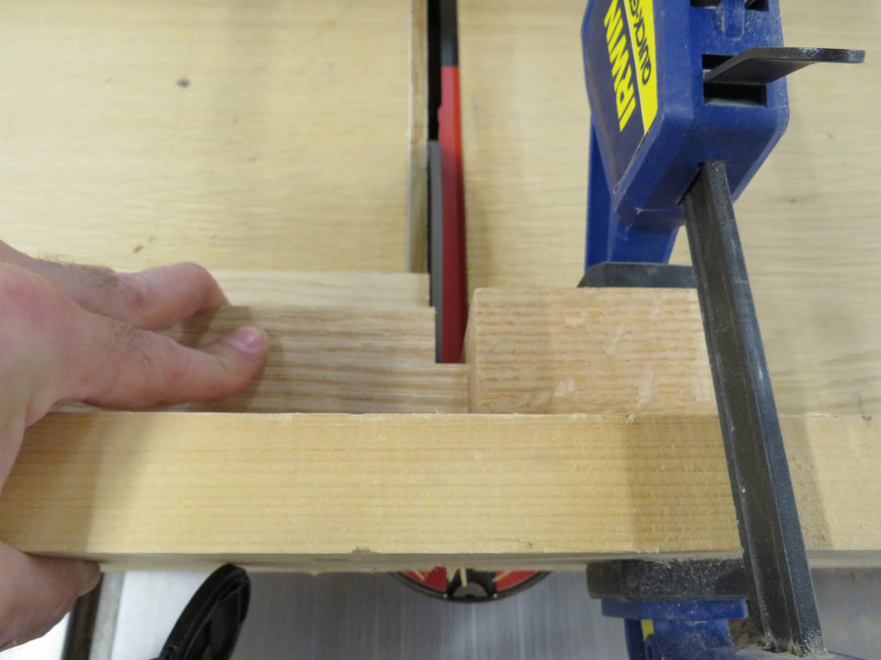 I use 1/8″ offcuts to create shims to hold the blank at the same size and stabilize the faces as I cut. The oak gets a little springy and my cuts may be off otherwise.