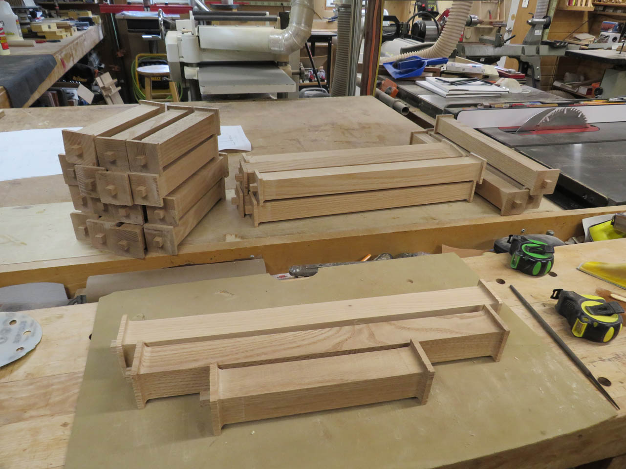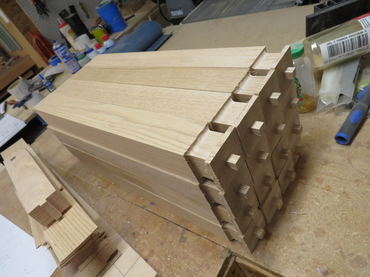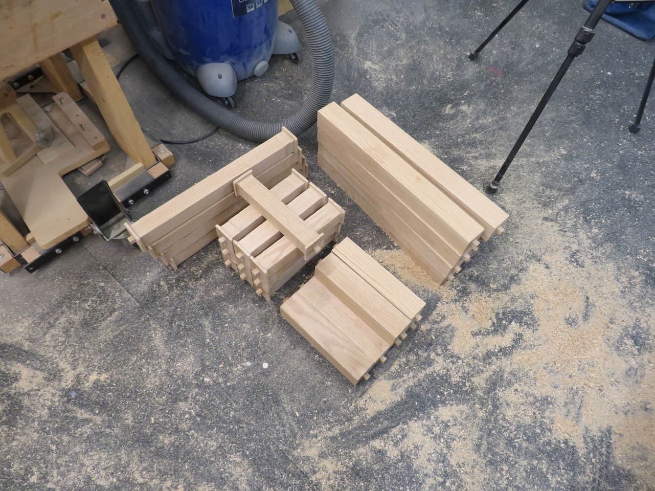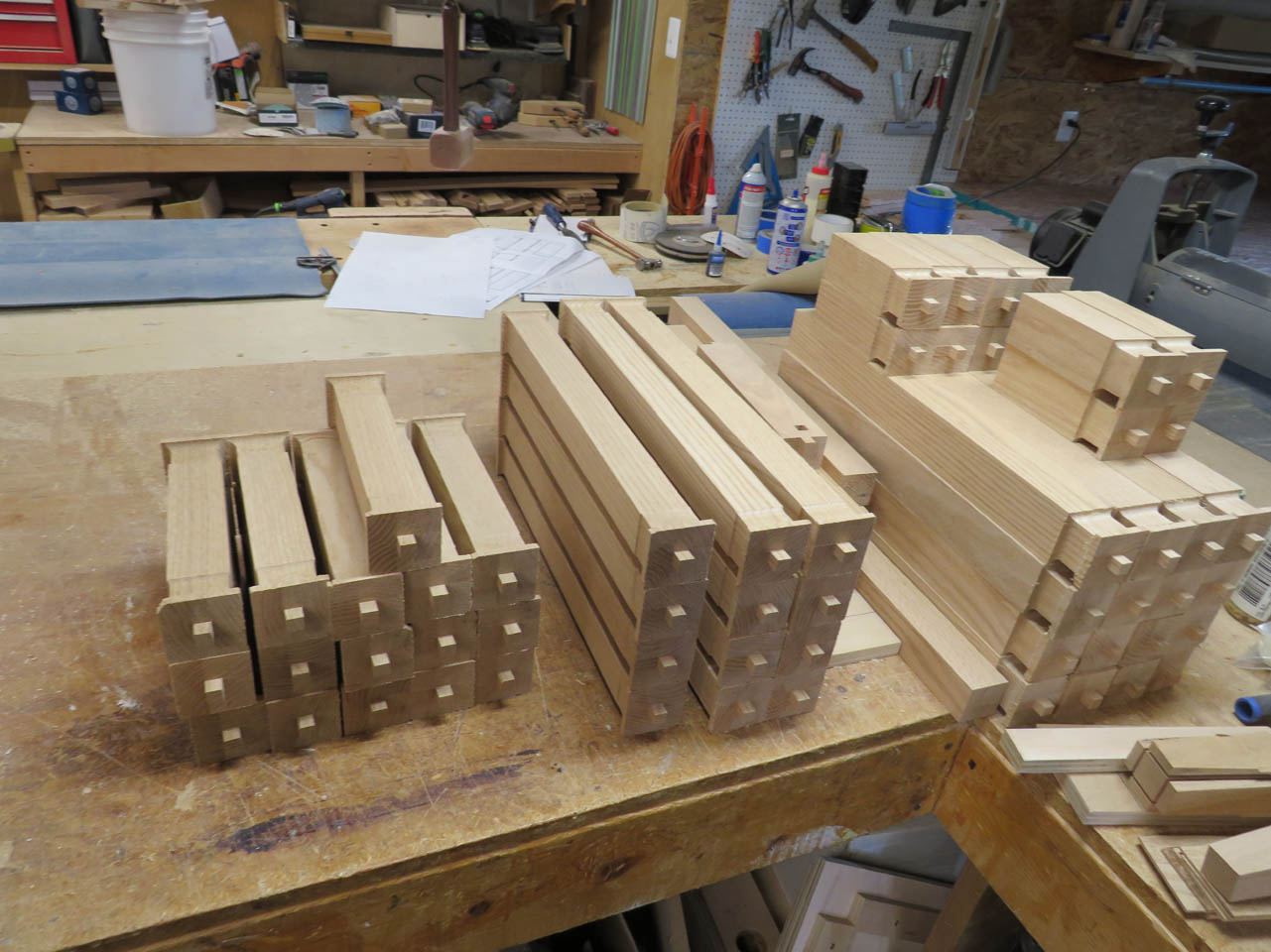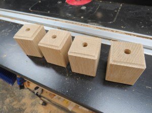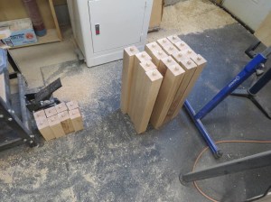 This will be a challenging project. The potential for mistakes becomes magnified by the quantity of parts repeated. I lost several leg blanks through the process due to problems like the router bit slipping out of the collet and chunks of wood tearing out in unexpected ways. I have learned to make extras or I lose a lot of time repeating setups perfectly. I also learned that you need to make extras even though it seems wasteful at the time. I am hoping that the legs will be the most challenging part of this build, but at least I am learning a lot along the way…