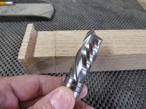 To clean up the columns, I am going to use this fancy compression bit which has a spiral cutter that runs in two different directions in an effort to prevent tear-out. Hopefully it will work…