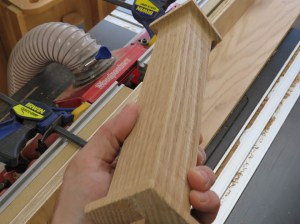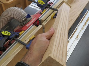 I left about 1/32″ of material to be removed after cutting each side. The rest can be cleaned up on the router table later when I finish cutting all the legs and columns on the other 55 blanks…