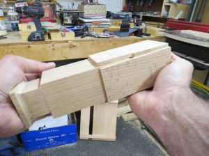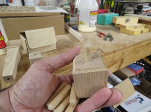 Now for a test fit of the foot. I have some 2″ long dowel pins that are fluted to hold glue, These should work perfectly for attaching the feet.