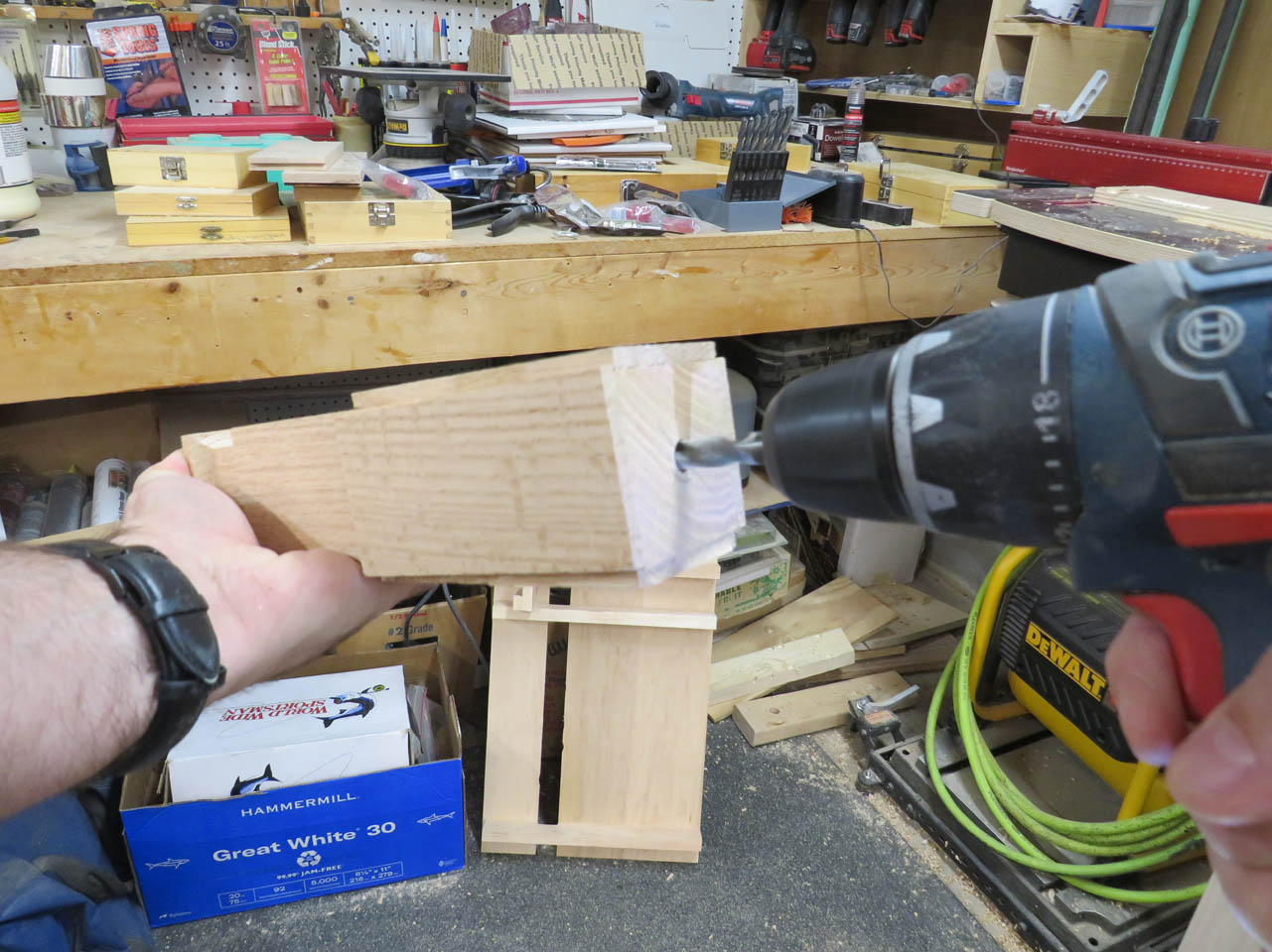 Once pressed firmly onto the end of each leg, I can use a hand drill to drill the opposing hole.