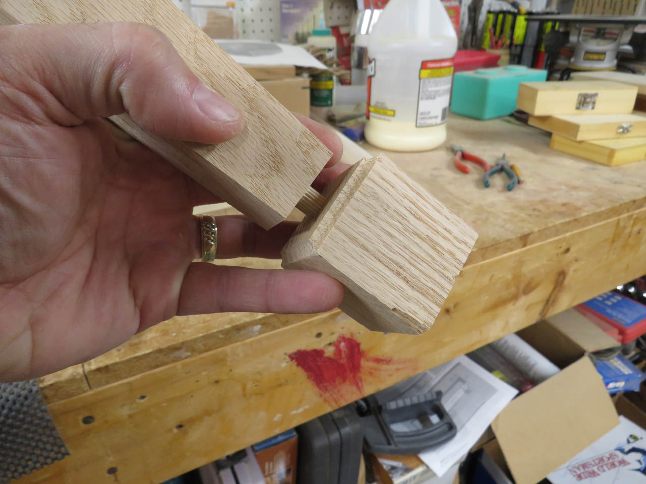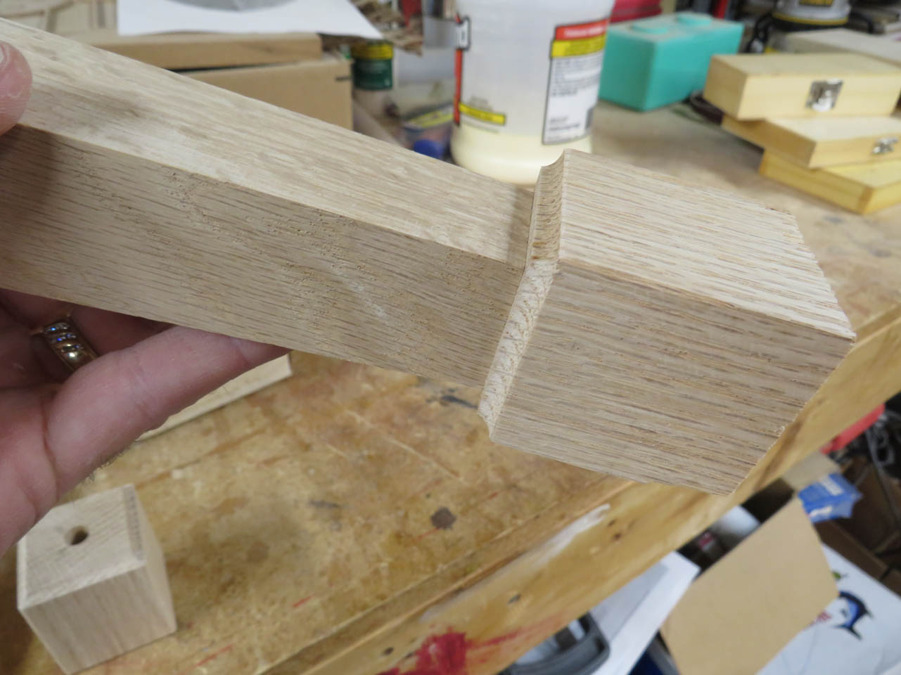 The square tenon presses perfectly into place, just loose enough to accept some glue.
