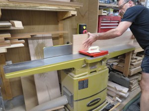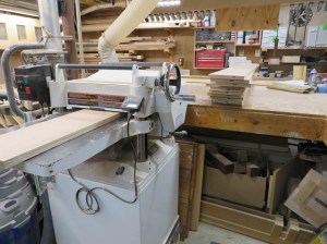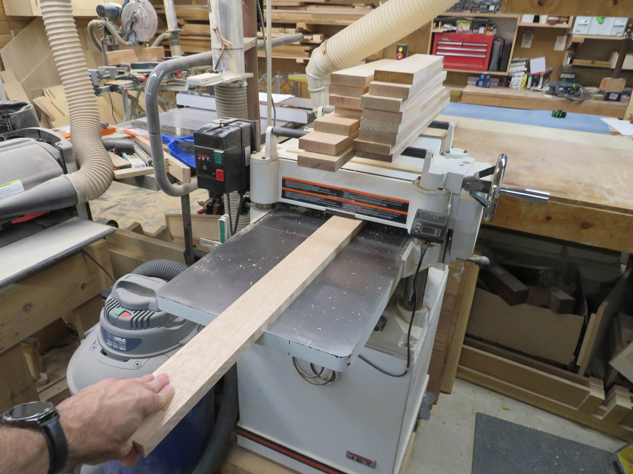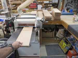 After I get all of the pieces cut and sorted, It is time to plane them all down to the final thickness. I had the mill plane the boards down to 1/16″ over the size I need so I only need to make a clean-up pass across each side to get my final thickness of 3/4″.