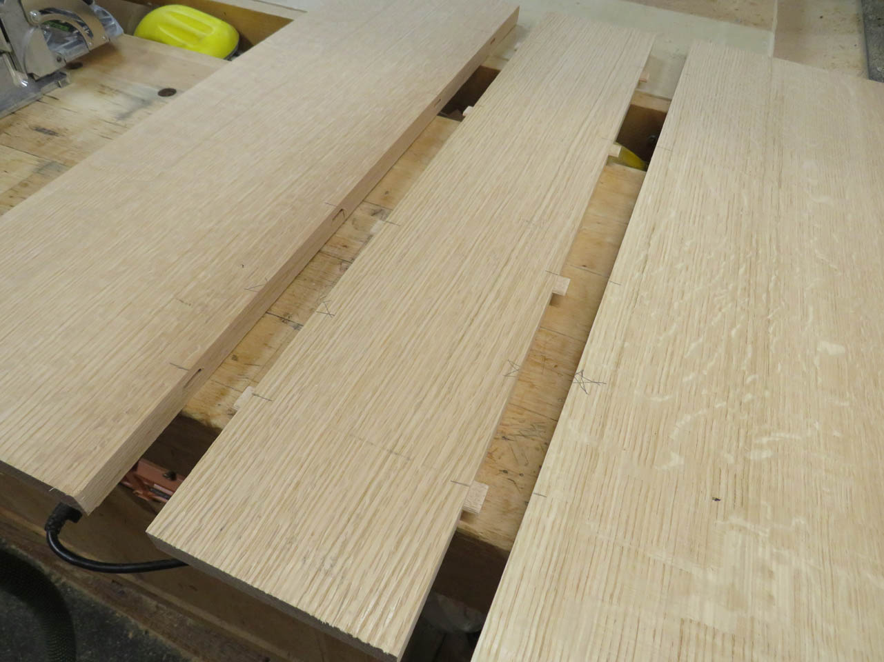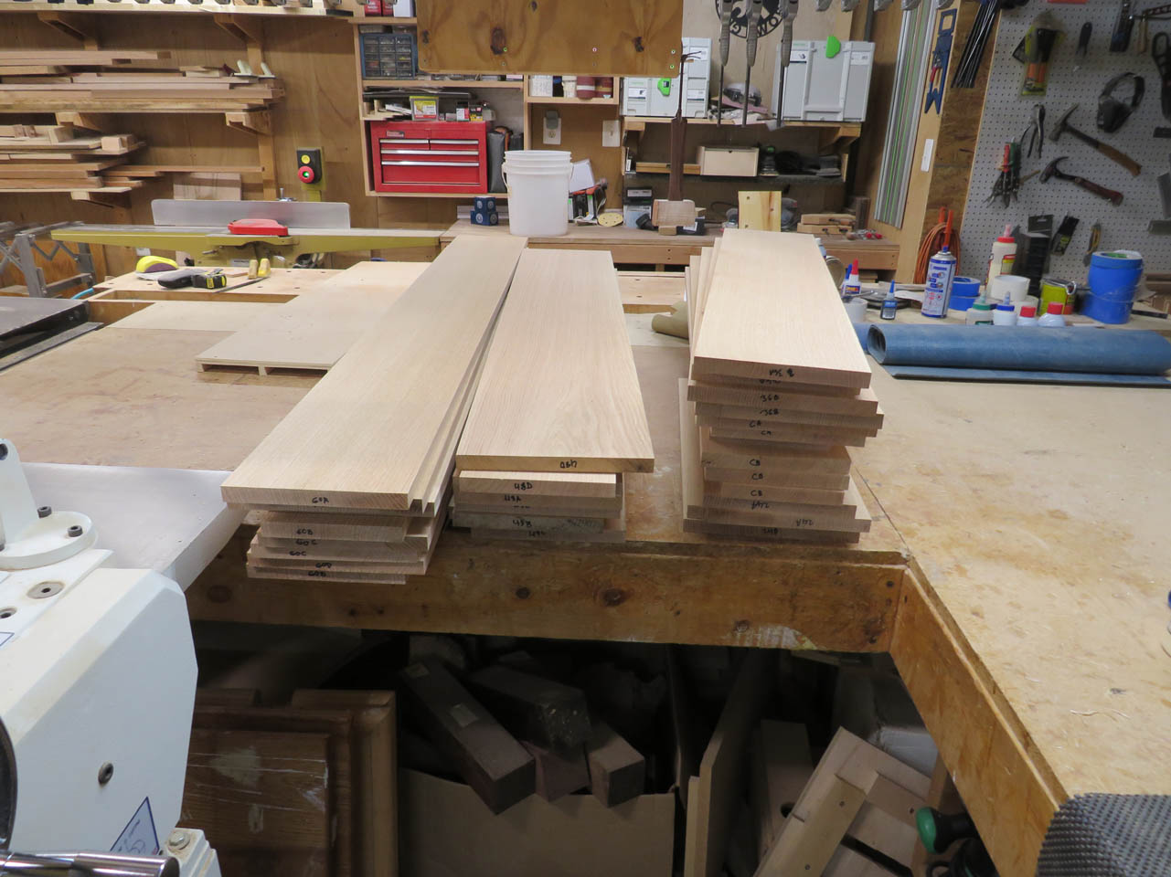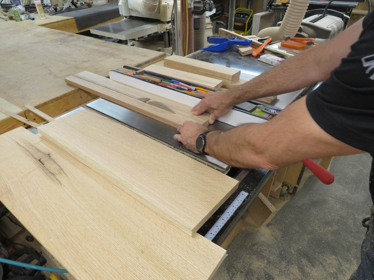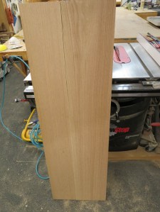 I have a large pile of quarter-sawn oak to start with so I pulled a couple of boards and rough-cut them down to size.