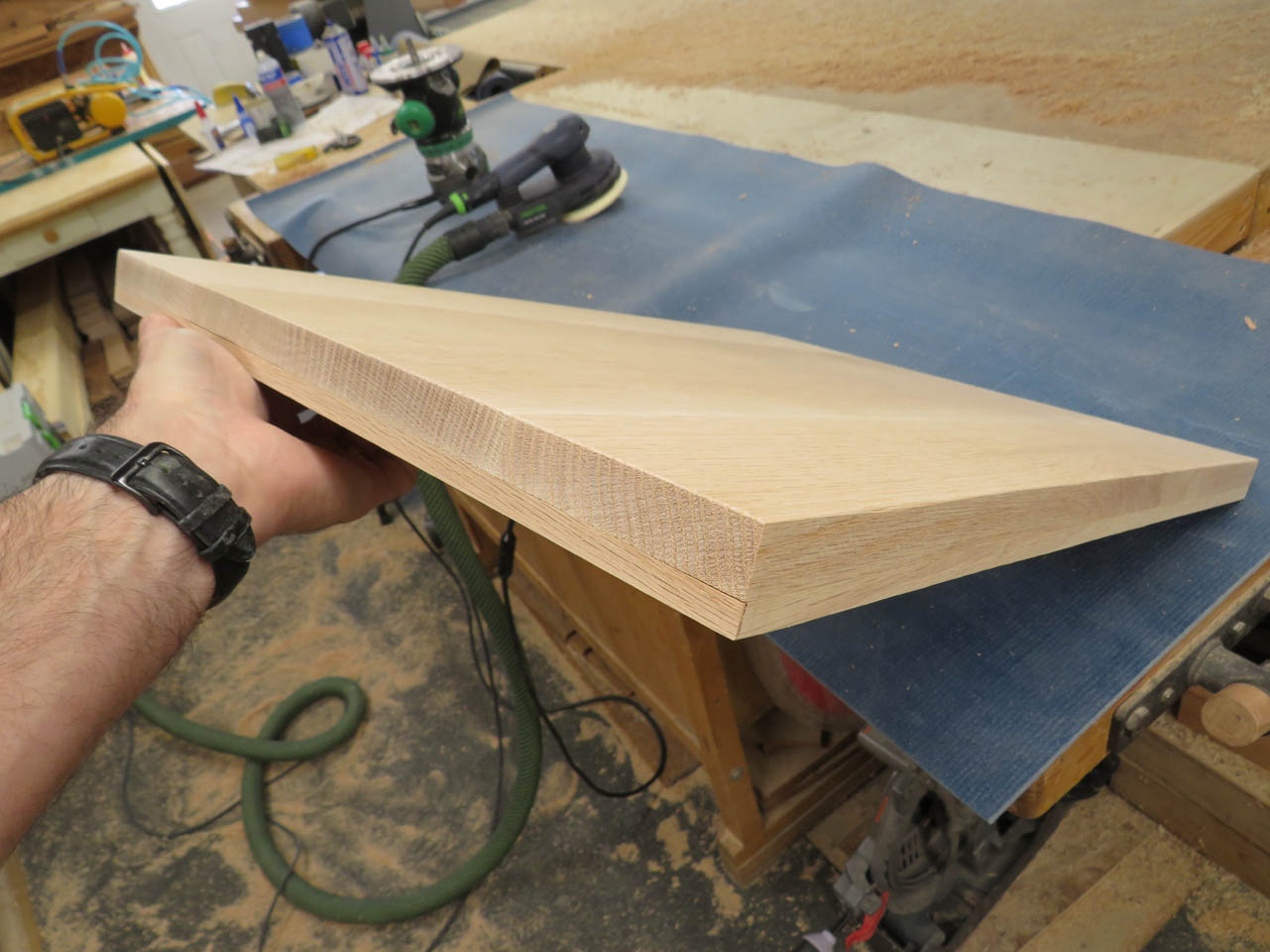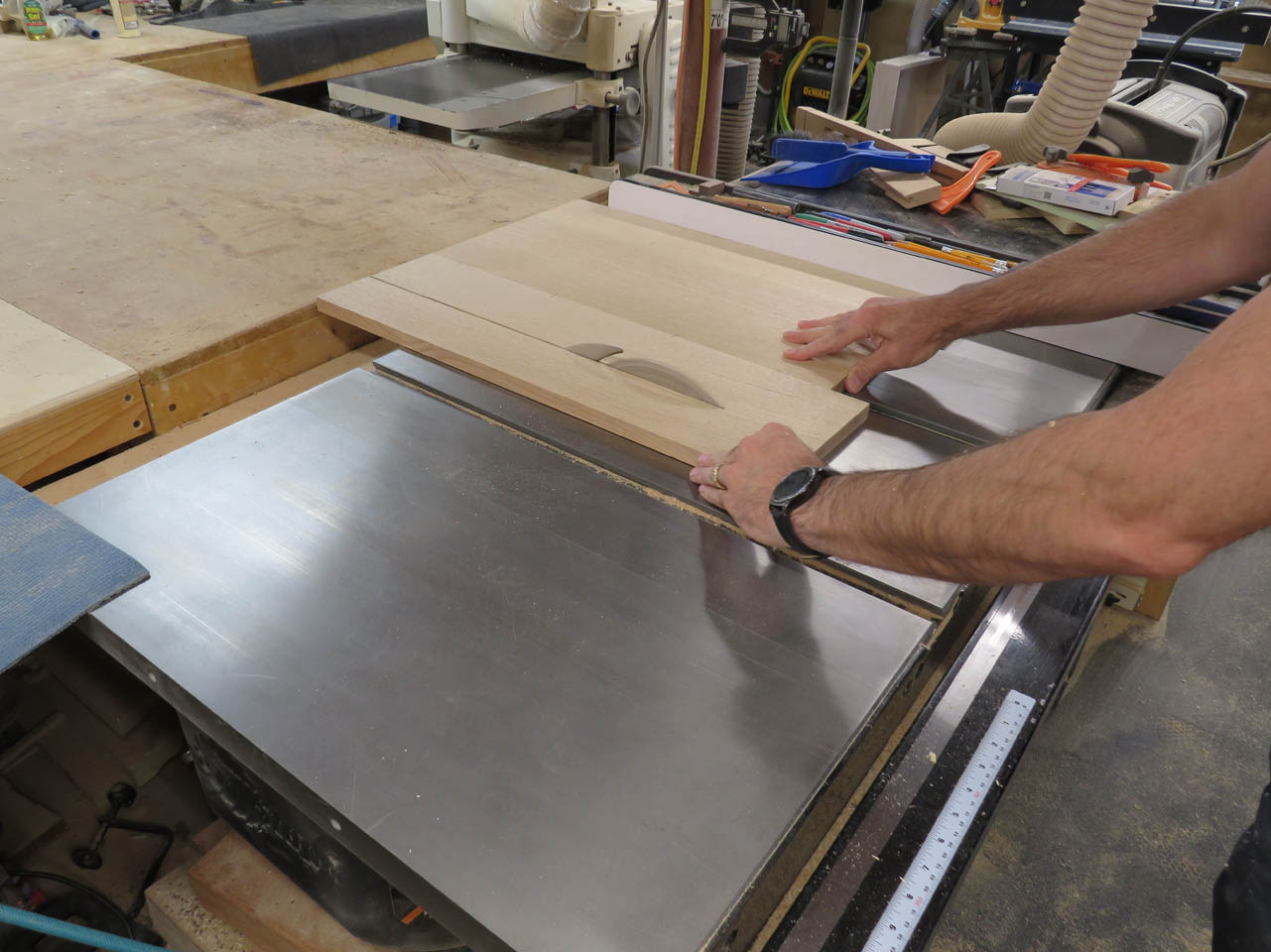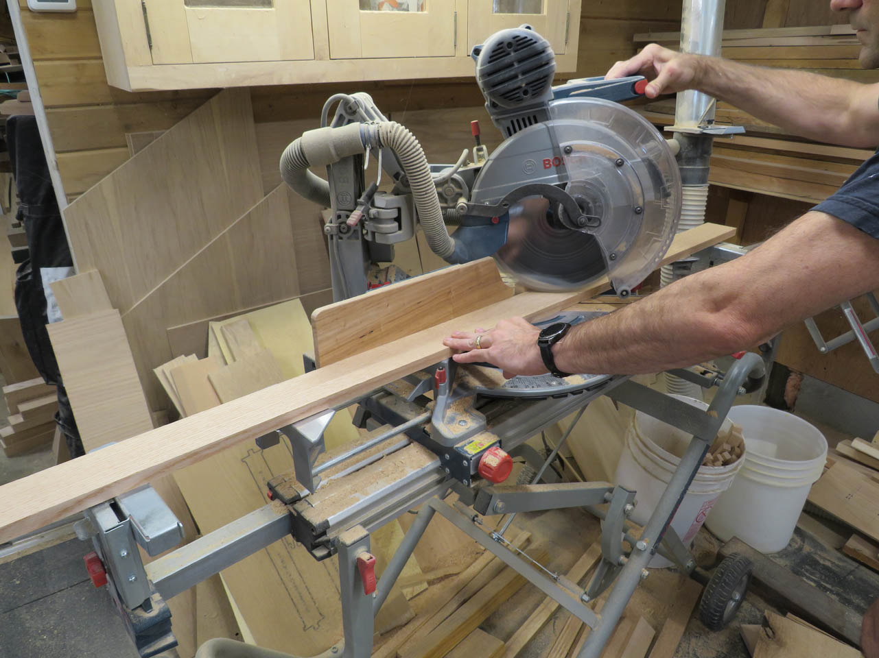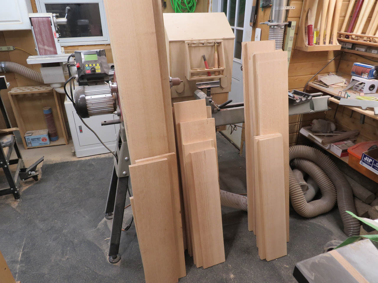 I have a large pile of quarter-sawn oak to start with so I pulled a couple of boards and rough-cut them down to size.