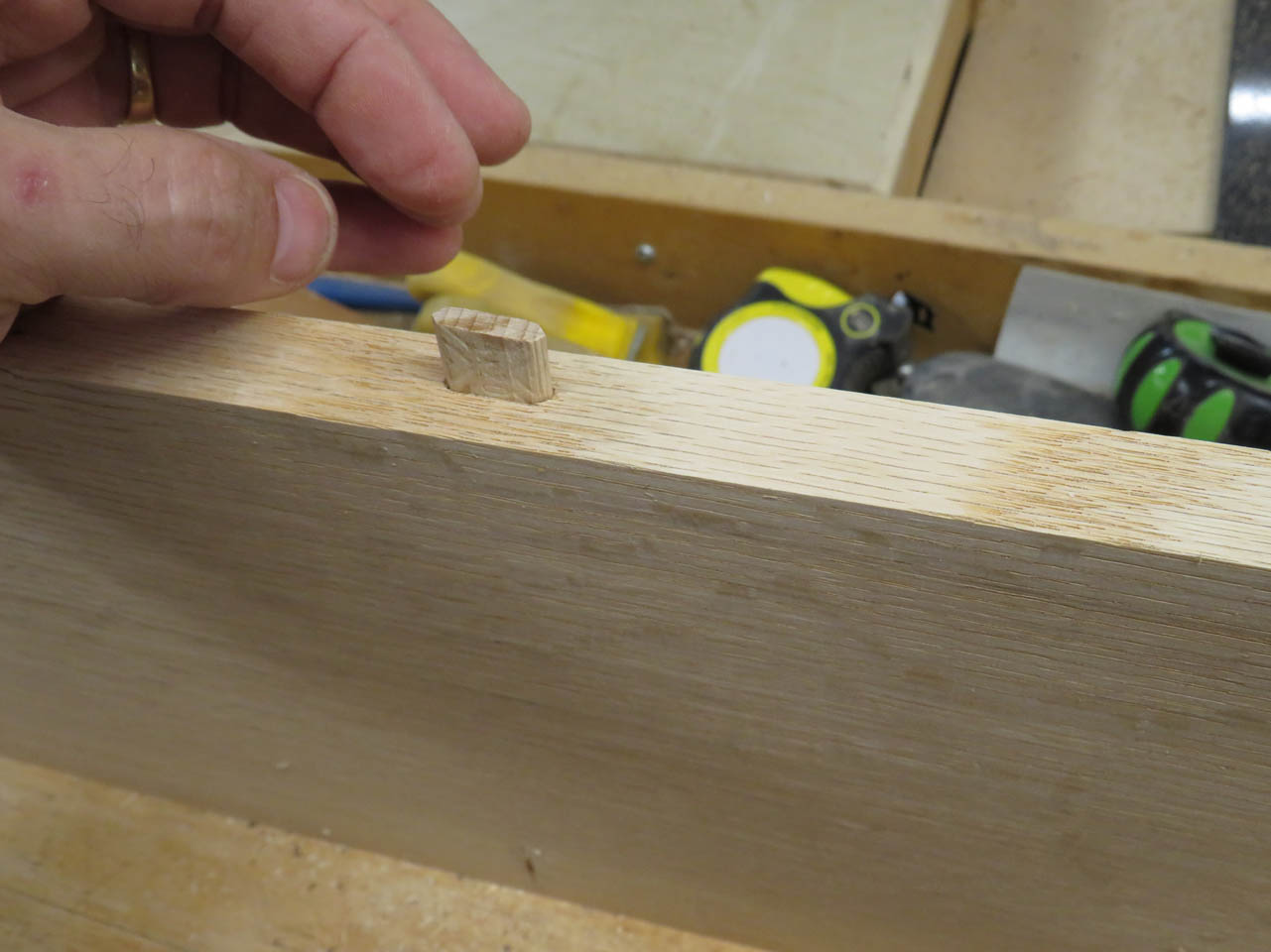 I pressed the tenons into one side of the joint and apply wood glue to the opposite side.
