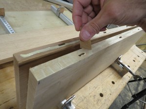 Then I can align my Domino jointer to the mark and plunge cut a mortise that is a perfect fit for the tenons.
