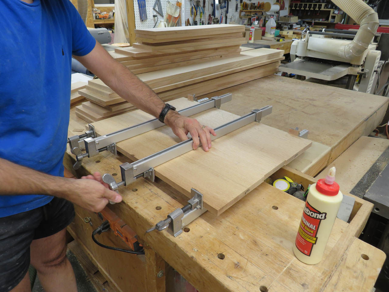 Then I clamp the boards together making sure to clamp over the top as well as the bottom to prevent the boards from cupping as they dry.